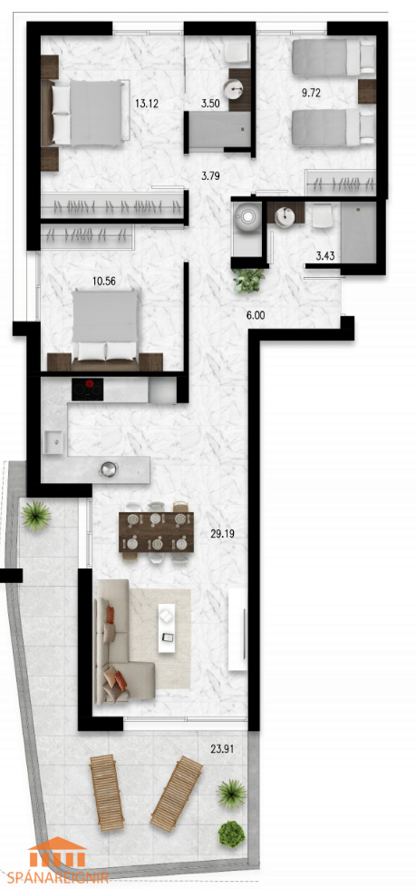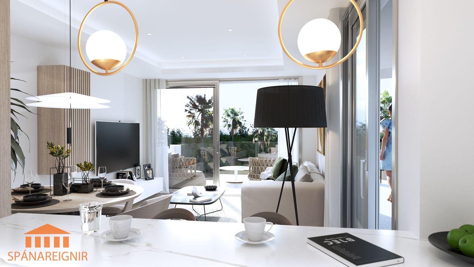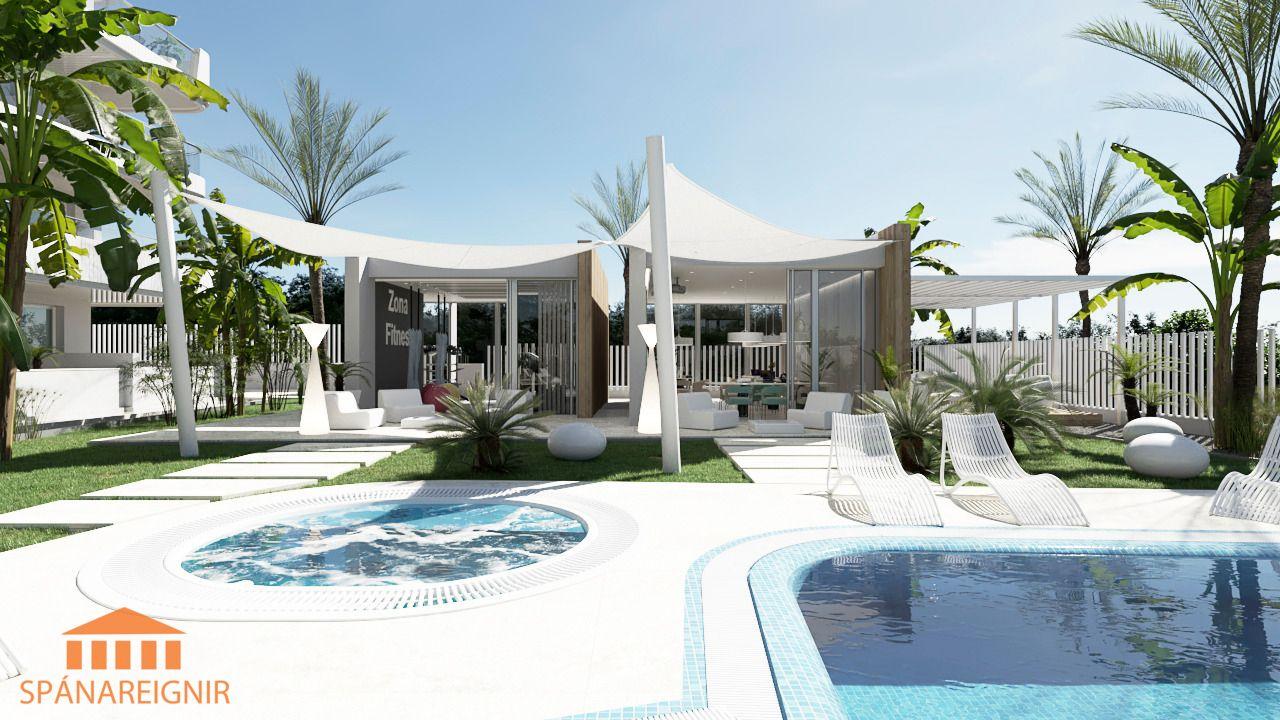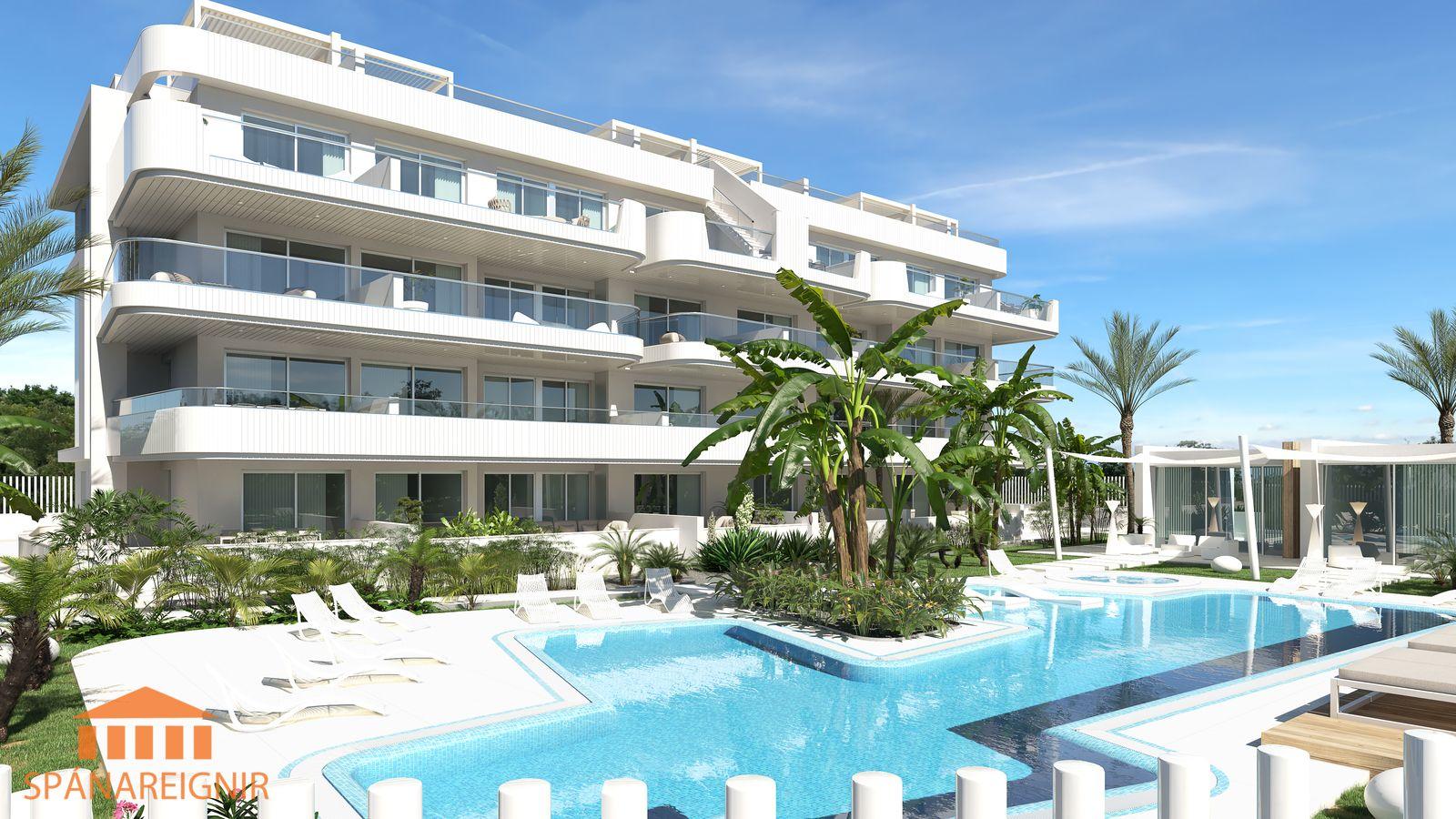 Berta Hawkins, löggiltur fasteignasali, GSM 0034 615 112 869. berta@spanareignir.isNánari lýsing:Um er að ræða nýbyggð lyftuhús með 3ja og 4ra herb. vel hönnuðum samtals 24 íbúðum. Íbúðirnar eru með tveimur eða þremur svefnherbergjum og tveimur baðherbergjum, góðri stofu/alrými og fallegu eldhúsi. Hægt er að velja íbúðir á jarðhæð, með sér garði, miðhæðum með stórum svölum eða á efstu hæð og þá með svölum og stórum einka þaksvölum. Falleg hönnun og vandaðar innréttingar. Glæsileg sameign með sundlaug, heitum pottum, líkamsræktaraðstöðu og góðri vinnuaðstöðu, fyrir þá sem vinna fjarvinnu. Góð leikaðstaða fyrir börnin. Frábært útsýni m.a. til sjávar.