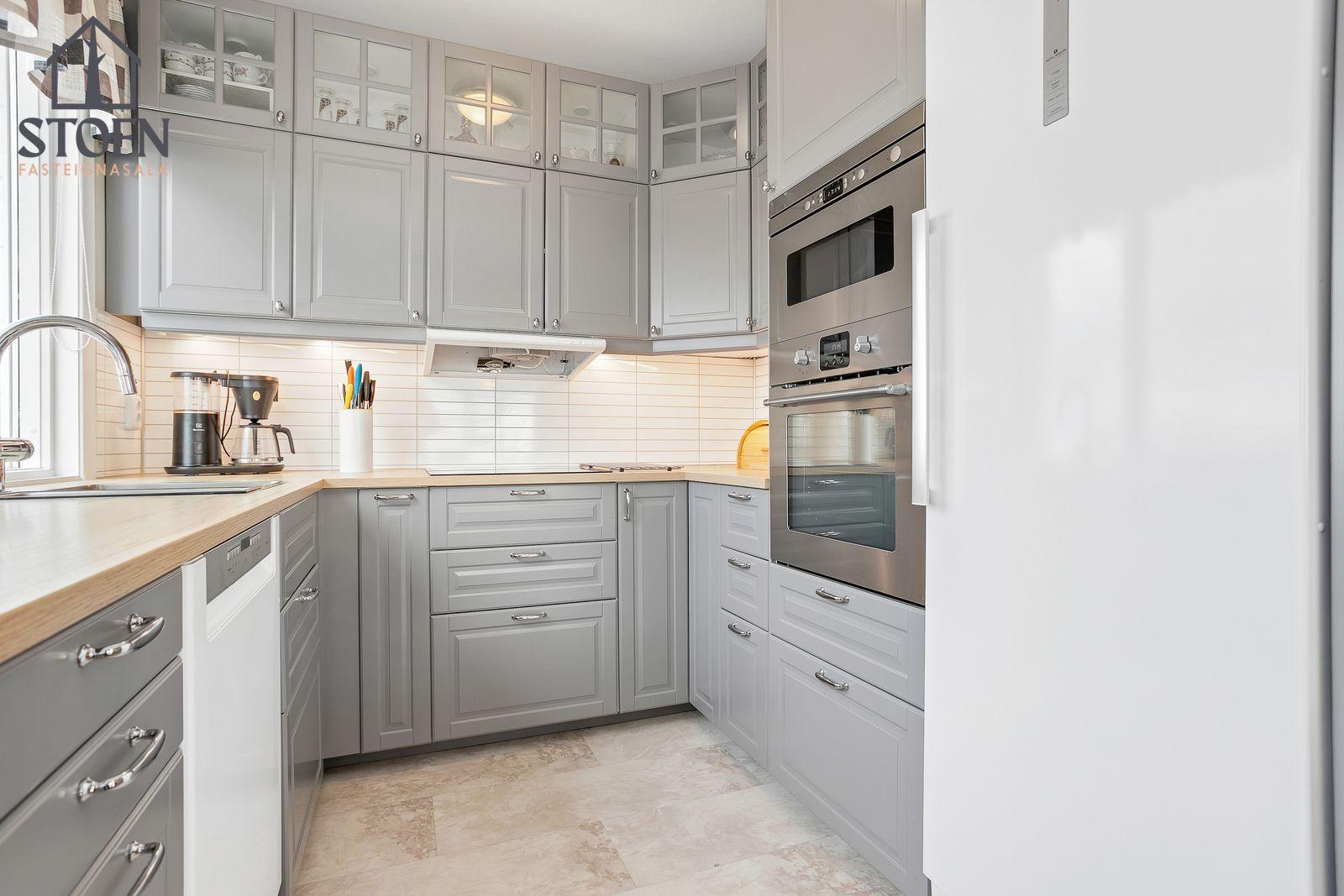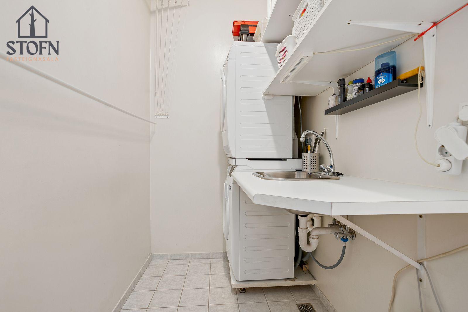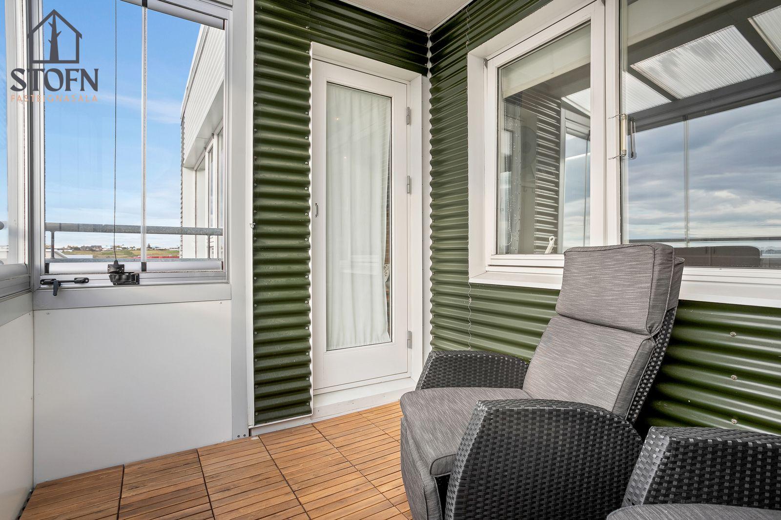 Forstofa er með flísum á gólfi og skápum. Hol er með parketi á gólfi. Stofa er með parketi á gólfi og þaðan er útgengt á suðursvalir með svalalokun og skemmtilegu útsýni til suðvesturs. Eldhús er með korkflísum á gólfi, viðarinnrétting og veggplötur á milli efri og neðri skápa. Svefnherbergin eru þrjú og eru með parketi á gólfum og skápar í tveimur af þrem herbergjum. Baðherbergi er með flísar á gólfi, wc, skápar undir vask og yfir ásamt baðkari með sturtu. Þvottahús er með flísar á gólfi ásamt vinnuborði, vask, hillum og snúrum. Geymsla er í sameign. Hjóla- og vagnageymsla er í sameign. Stæði í bílageymslu í bílakjallara.