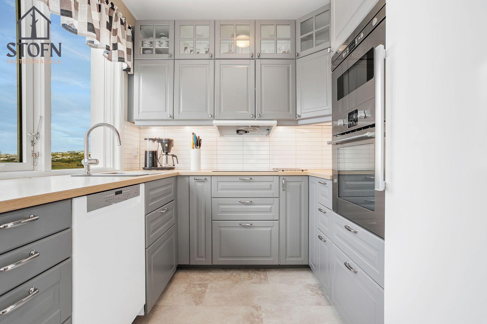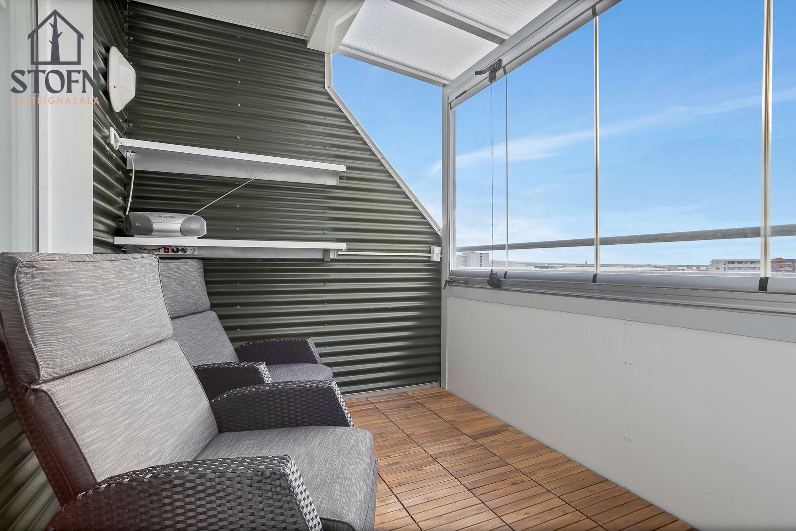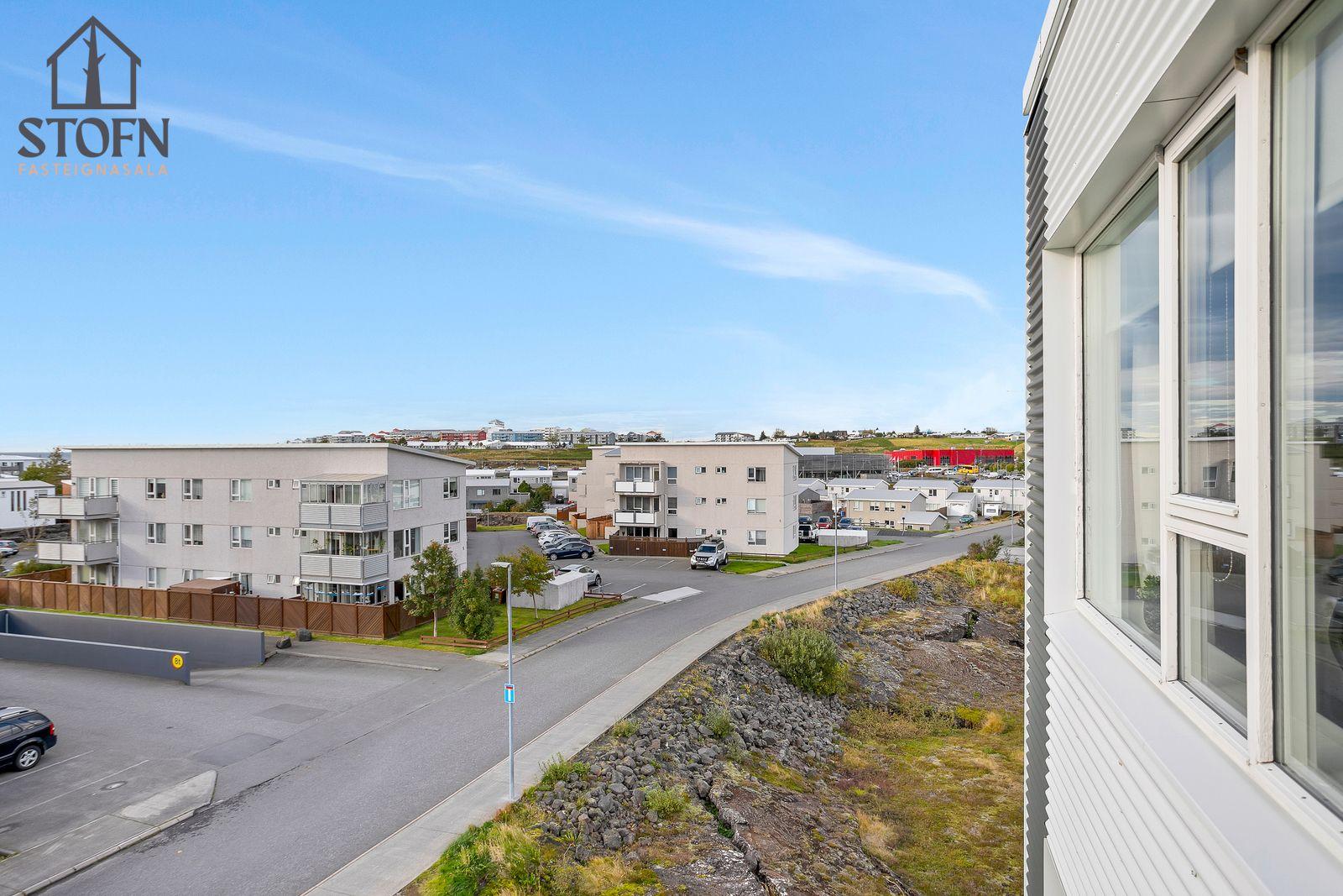 STOFN FASTEIGNASALA KYNNIR: Bjarta 91,1 fm 4ra herbergja endaíbúð á 4. hæð í lyftublokk með glugga í þrjár áttir, stæði í bílageymslu og svalalokun. Stutt er síðan að settir voru upp myndavélakerfi á geymslugöngum í sameign og í bílageymslu. Einnig er allt tilbúið til að setja upp hleðslustöð við bílastæði í bílageymslu. Þá hefur ytra byrði fengið viðhald eftir þörfum. Einnig voru settar upp fjórar hleðslustöðvar, tveir staurar með tveimur hleðslum hvor. Stutt er í alla þjónustu, Haukasvæðið er nánast í bakgarðinum. Skóli og leikskóli er líka í göngufæri.