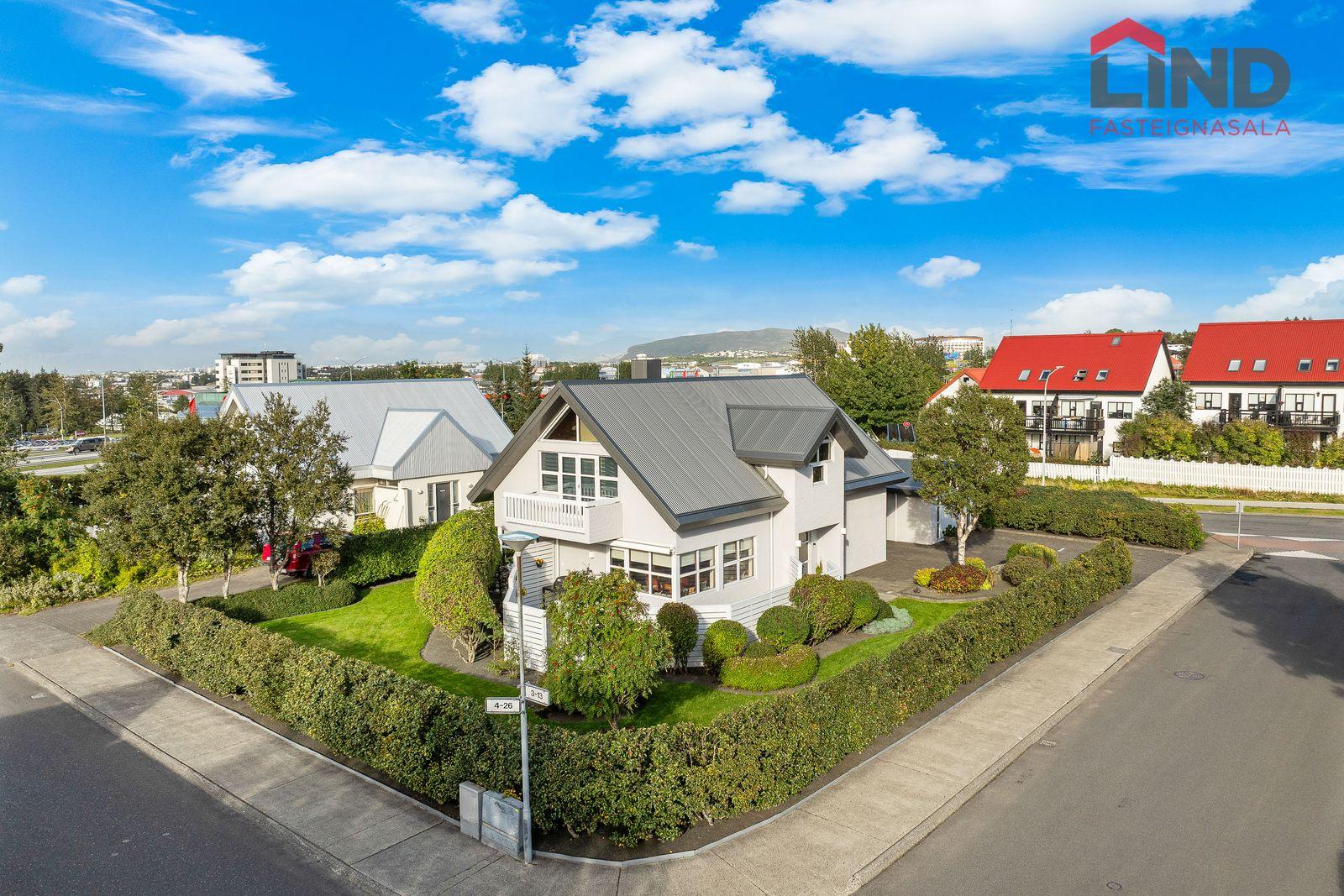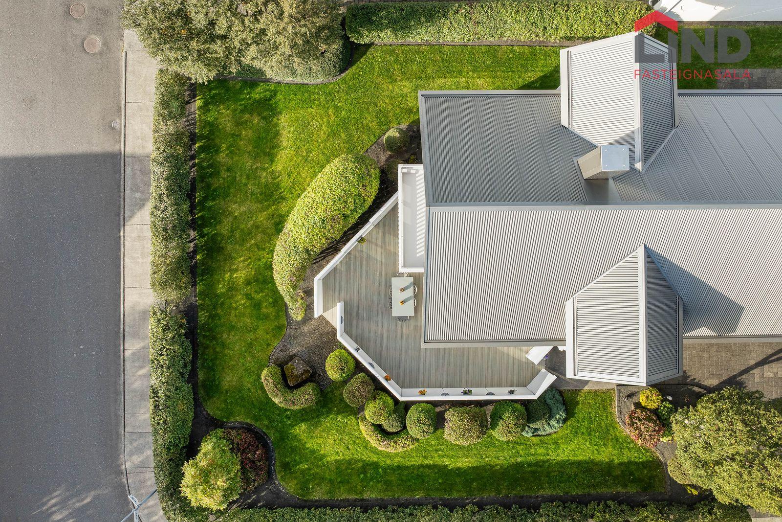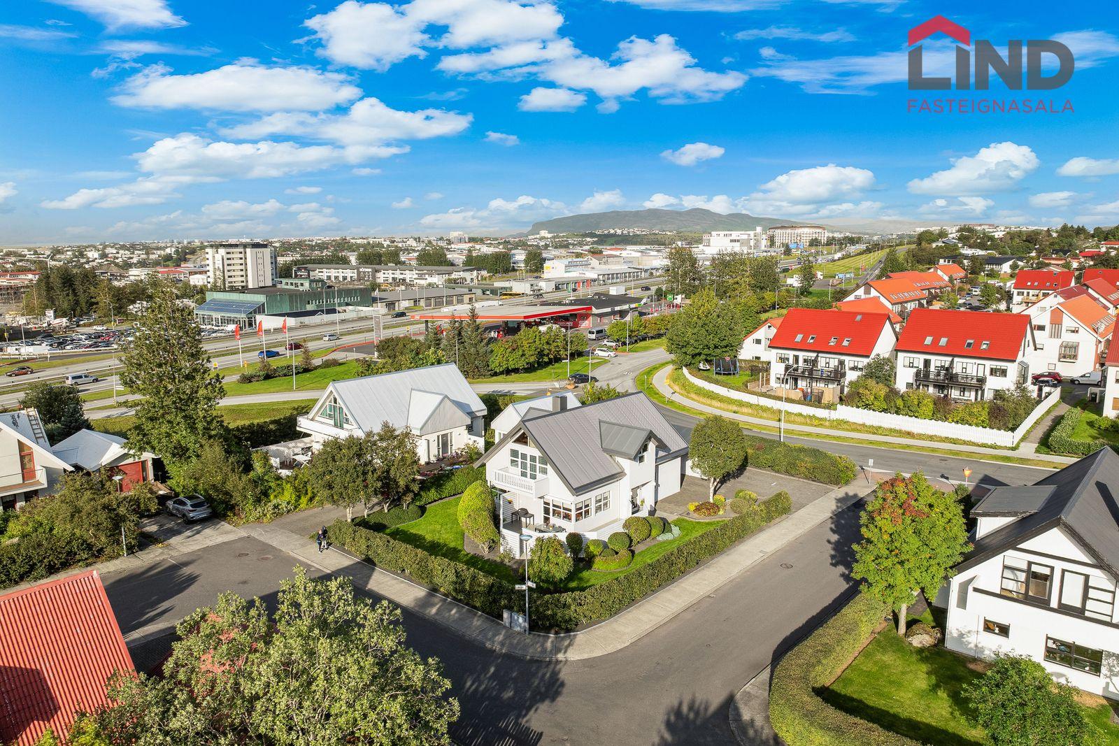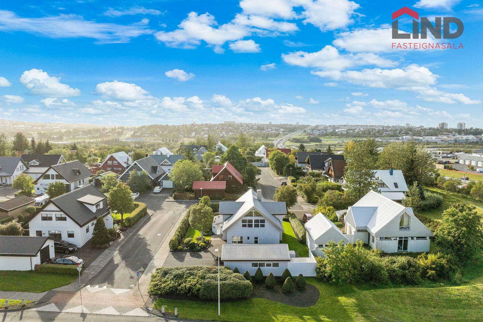 Falleg 691,0 fermetra gróin lóð með hellulögðum bílastæðum með snjóbræðslu að hluta. Lóðin er falleg með tyrfðum flötum og fallegum gróðri. Rúmgóð verönd sem snýr til suðurs og vesturs þar sem sólar nýtur allan daginn. Húsið er staðsett í rólegum botnlanga í námunda við afar fallegar göngu- og hjólaleiðir í næsta nágrenni við Elliðaárdalinn.