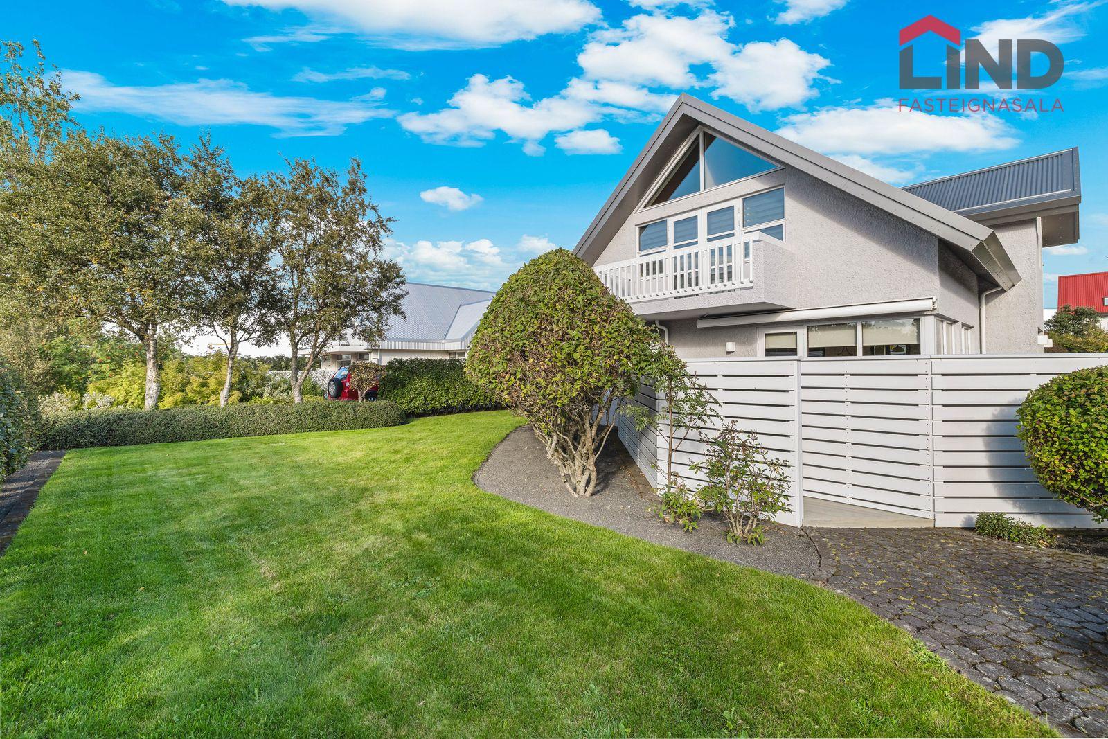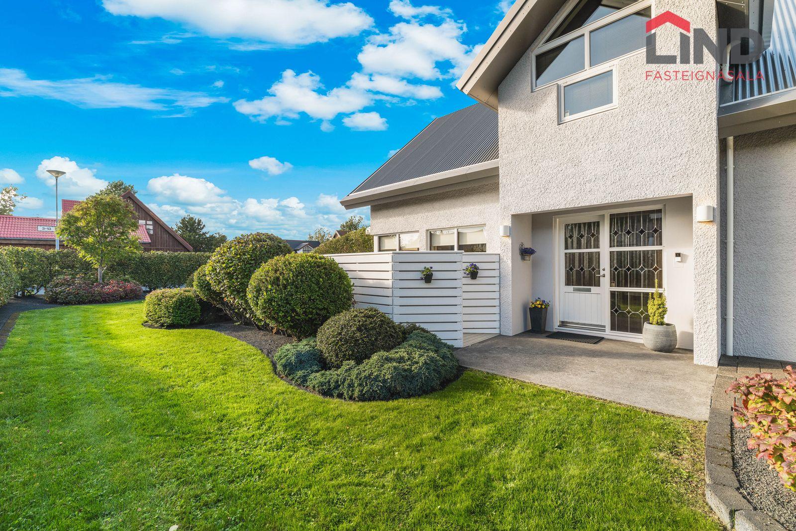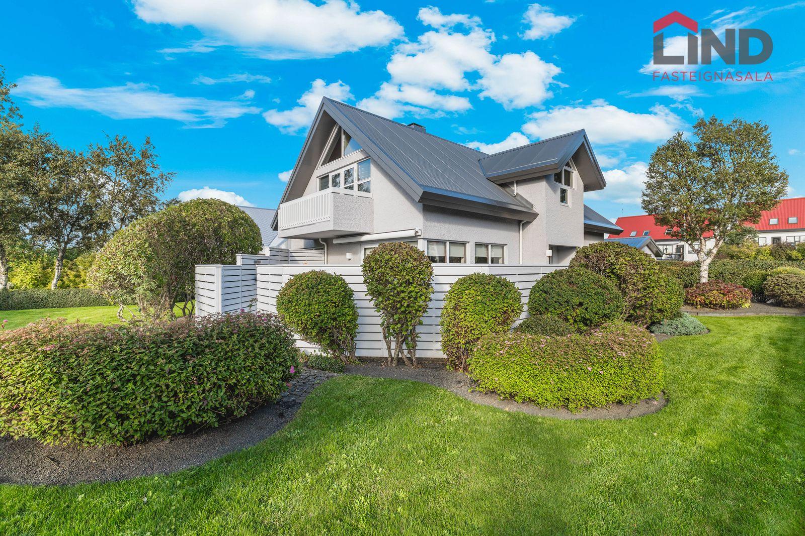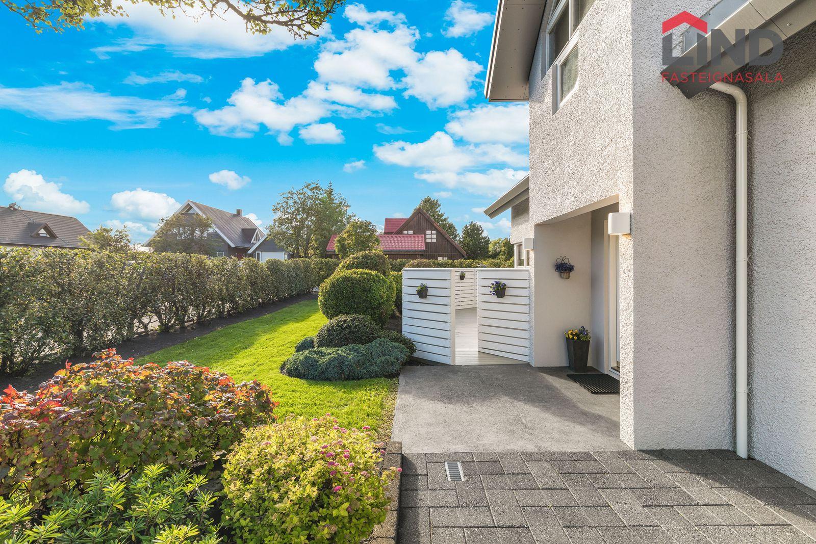 Glæsilegt og vandað fjölskylduhús með 4-5 svefnherbergjum, afar fallegri lóð og stórum bílskúr.