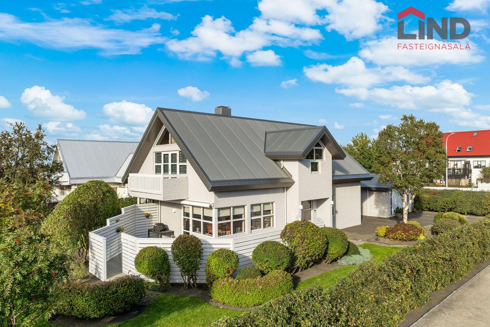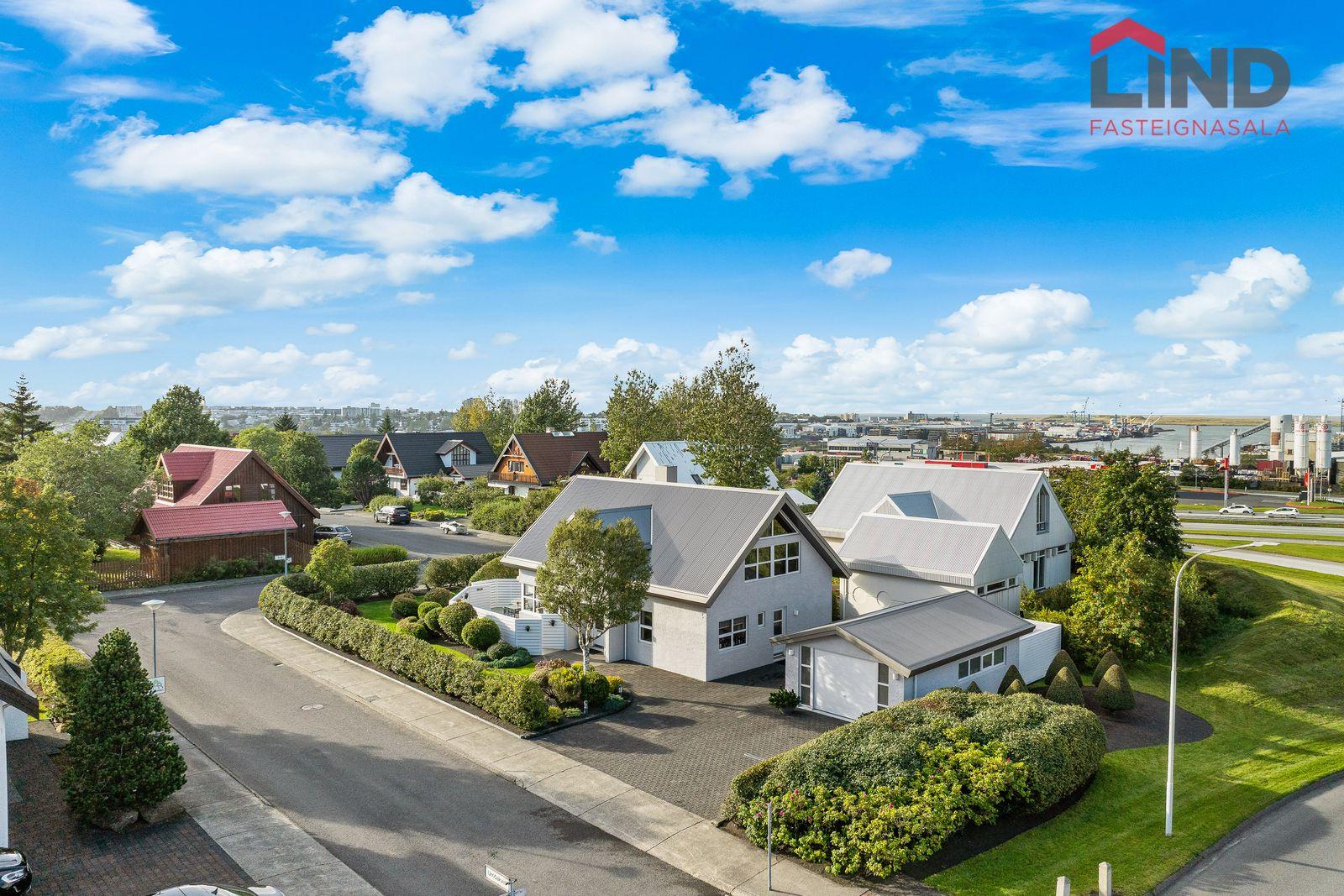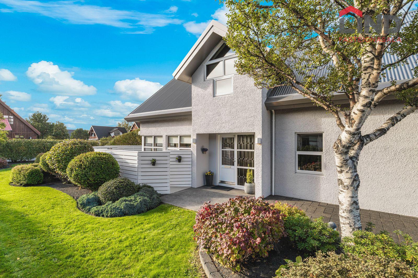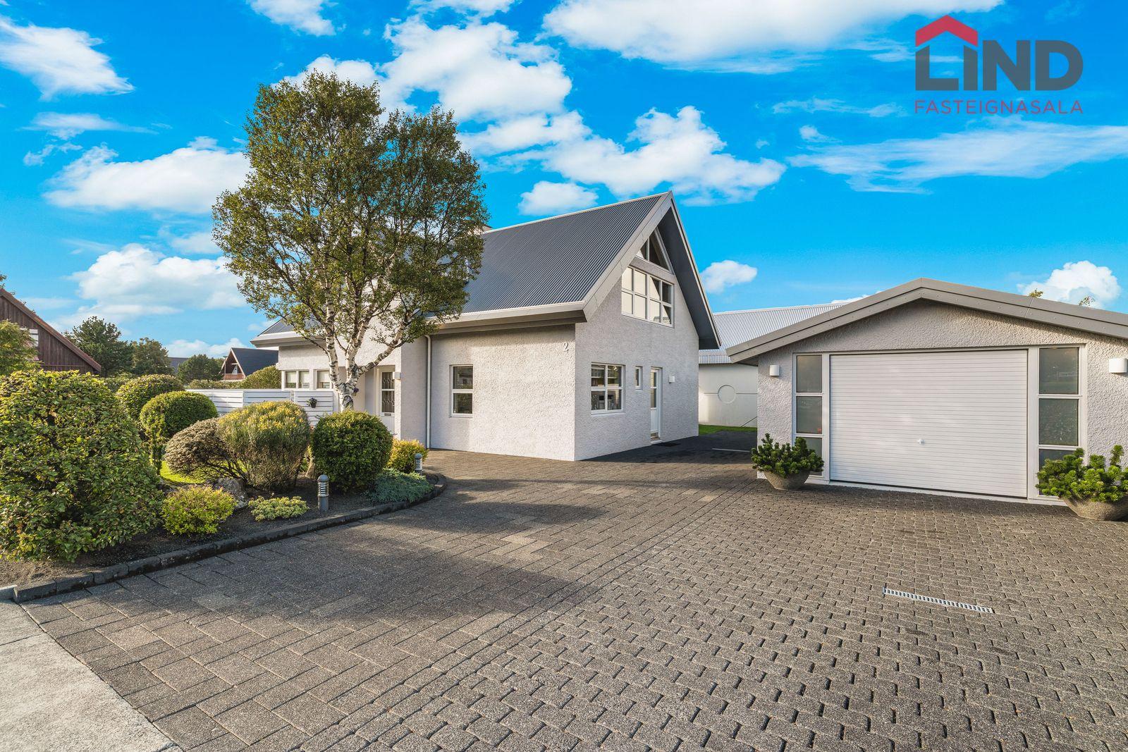 Glæsilegt og vandað fjölskylduhús með 4-5 svefnherbergjum, afar fallegri lóð og stórum bílskúr.