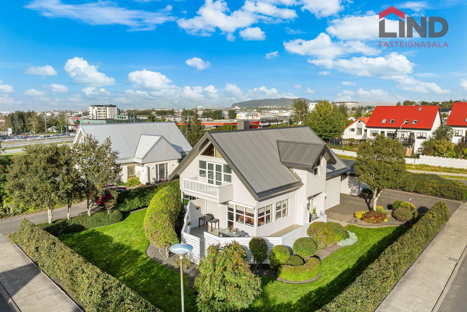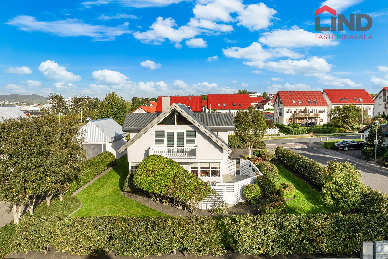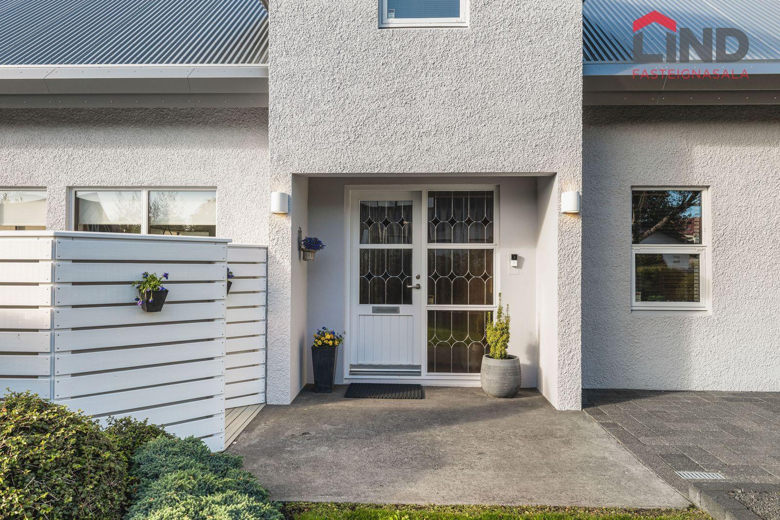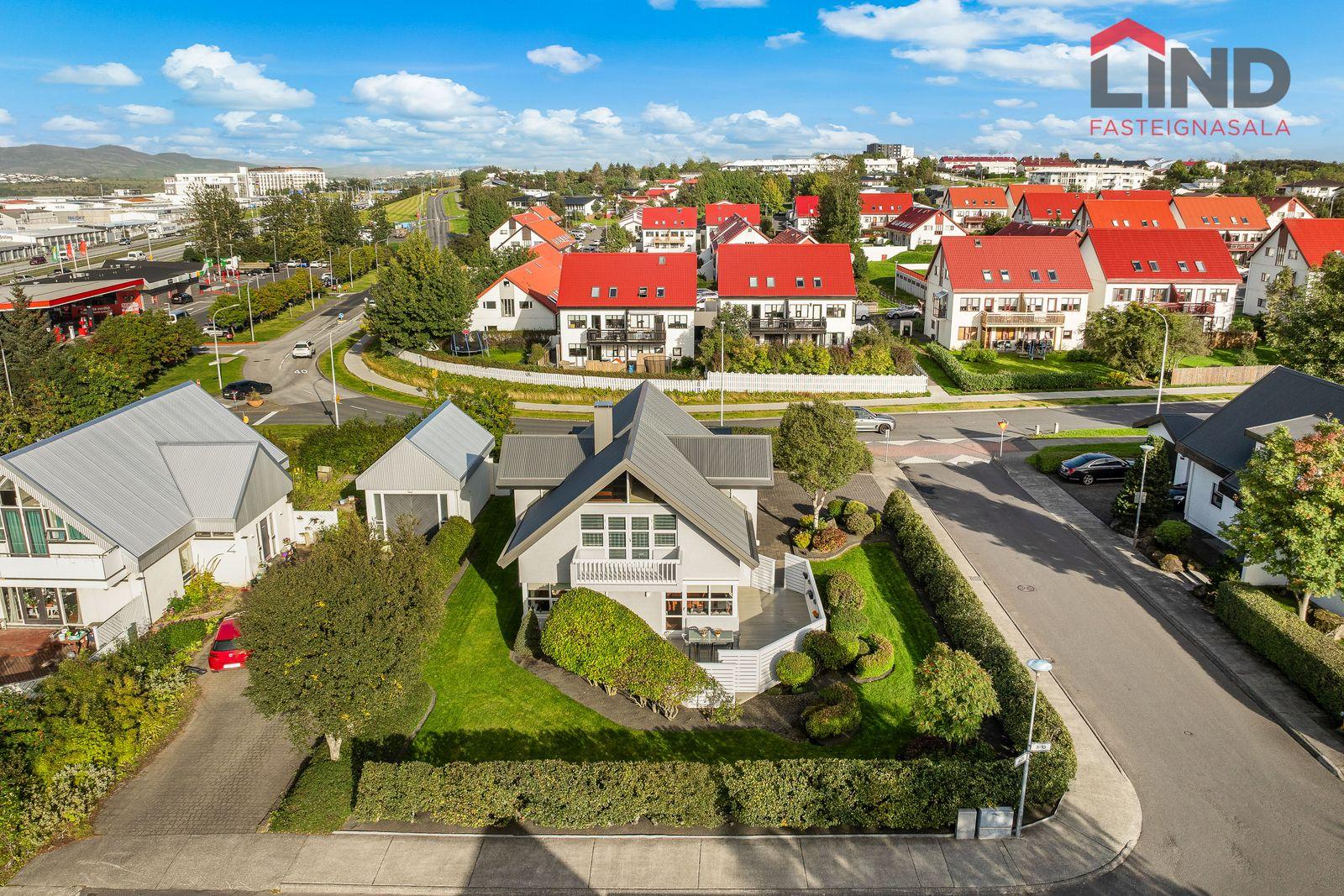Glæsilegt og vandað fjölskylduhús með 4-5 svefnherbergjum, afar fallegri lóð og stórum bílskúr.