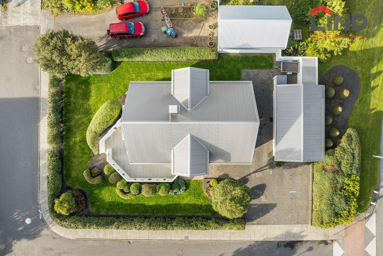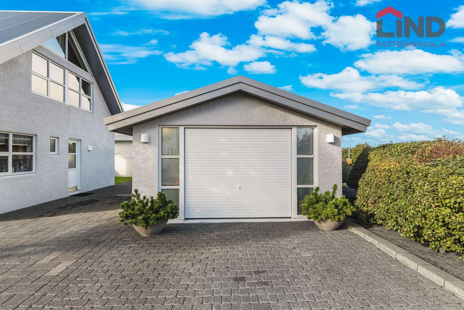 Bílskúr: Er stór, eða 40,5 fermetrar að stærð. Frístandi með nýju stáli á þaki og 2mm áli á þakköntum eins og á húsinu sjálfu. Rafmagnsopnun á bílskúrshurð og inngangshurð vestan megin við bílskúr. Gluggar til norðurs, austurs og suðurs.