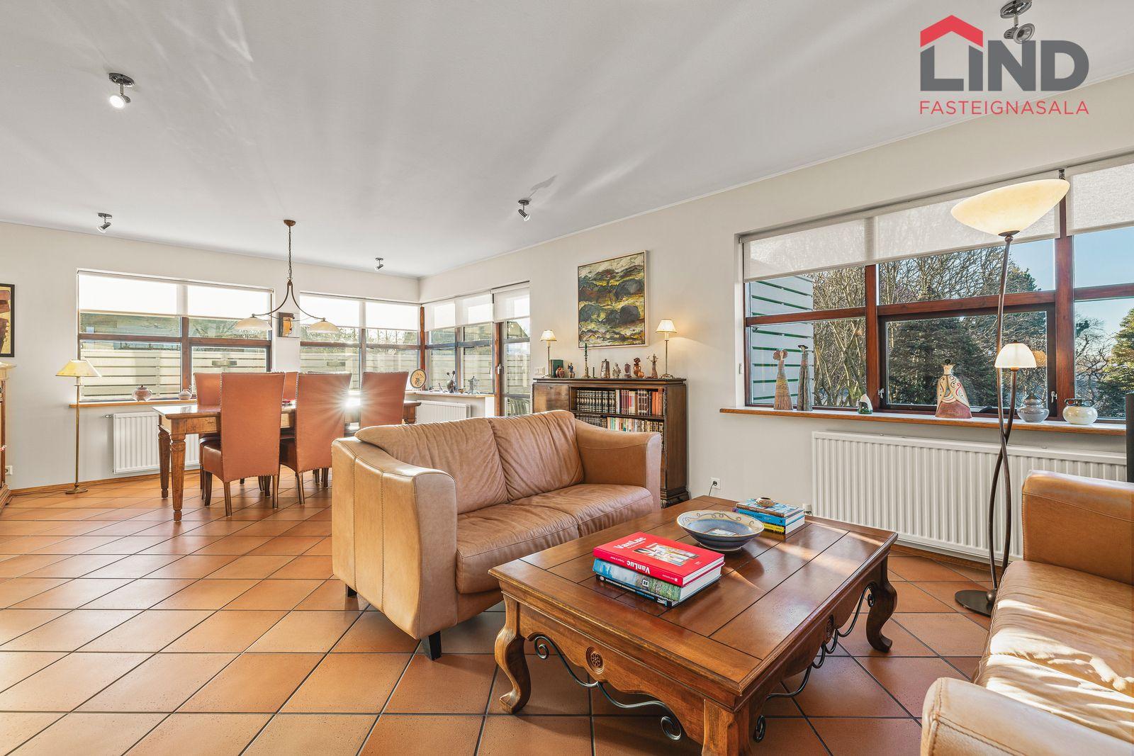 Lind fasteignasala / Heimir Hallgrímsson lögg. fasteignasali kynnir afar fallegt og vel skipulagt 6 herbergja 233,8 fermetra einbýlishús á tveimur hæðum sem er teiknað af Agli Guðmundssyni arkitekt. Eignin skiptist í 104,7 fermetra aðalhæð, 88,6 fermetra efri hæð og rúmgóðan 40,5 fermetra bílskúr, samtals 233,8 fermetrar að stærð. Fjögur svefnherbergi eru í húsinu í dag (möguleiki að bæta við fimmta svefnherberginu á kostnað sjónvarpsherbergis á efri hæð). Um er að ræða afar vel staðsett hús í grónu fjölskylduhverfi (lokuðum botnlanga) við Urriaðkvísl 2 í Reykjavík. Húsið er afar sjarmernandi með aukinni lofthæð yfir efri hæð og brasilískri furu í loftum. Húsið hefur fengið mjög gott viðhald í gegnum árin og ber húsið þess vel merki að utan sem innan. Árið 2019 var sett nýtt stál á þakið og 2mm ál á alla þakkanta. Sama ár var húsið allt málað. Árið 2020 var baðherbergið á efri hæð endurnýjað á virkilega fallegan og vandaðan máta. Einnig var sett nýtt parket á alla efri hæðina og nýtt teppi á stiga á milli hæða.
