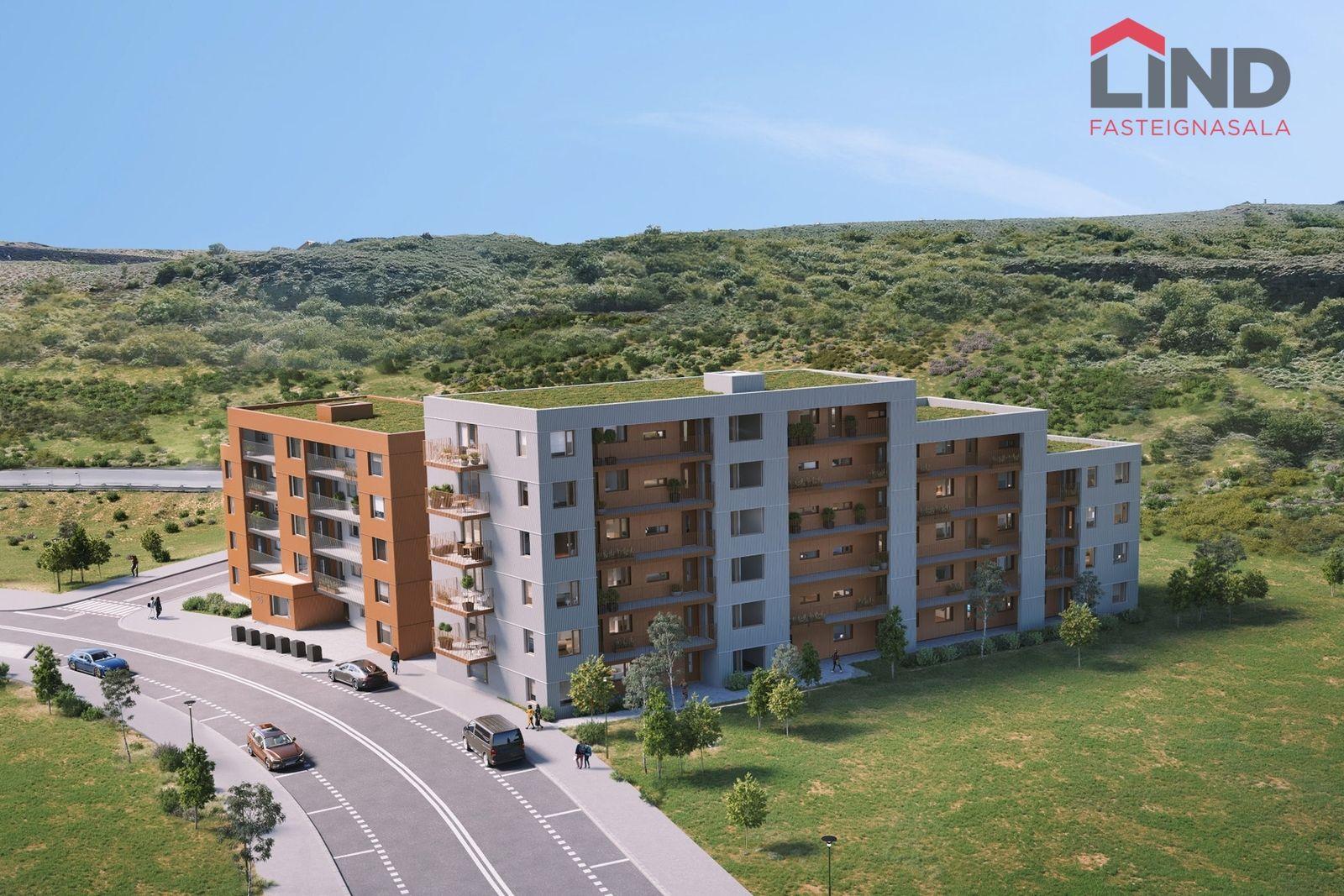 Íbúð 106: Er 100,8 fermetra 4ja herbergja íbúð á fyrstu hæð með stórum 11,0 fermetra sérafnotareit. Þar af er geymsla 10,5 fermetrar. Afhending er áætluð í mars/apríl 2026 en þó með fyrirvara um að öryggisúttekt sé komin á húsið.