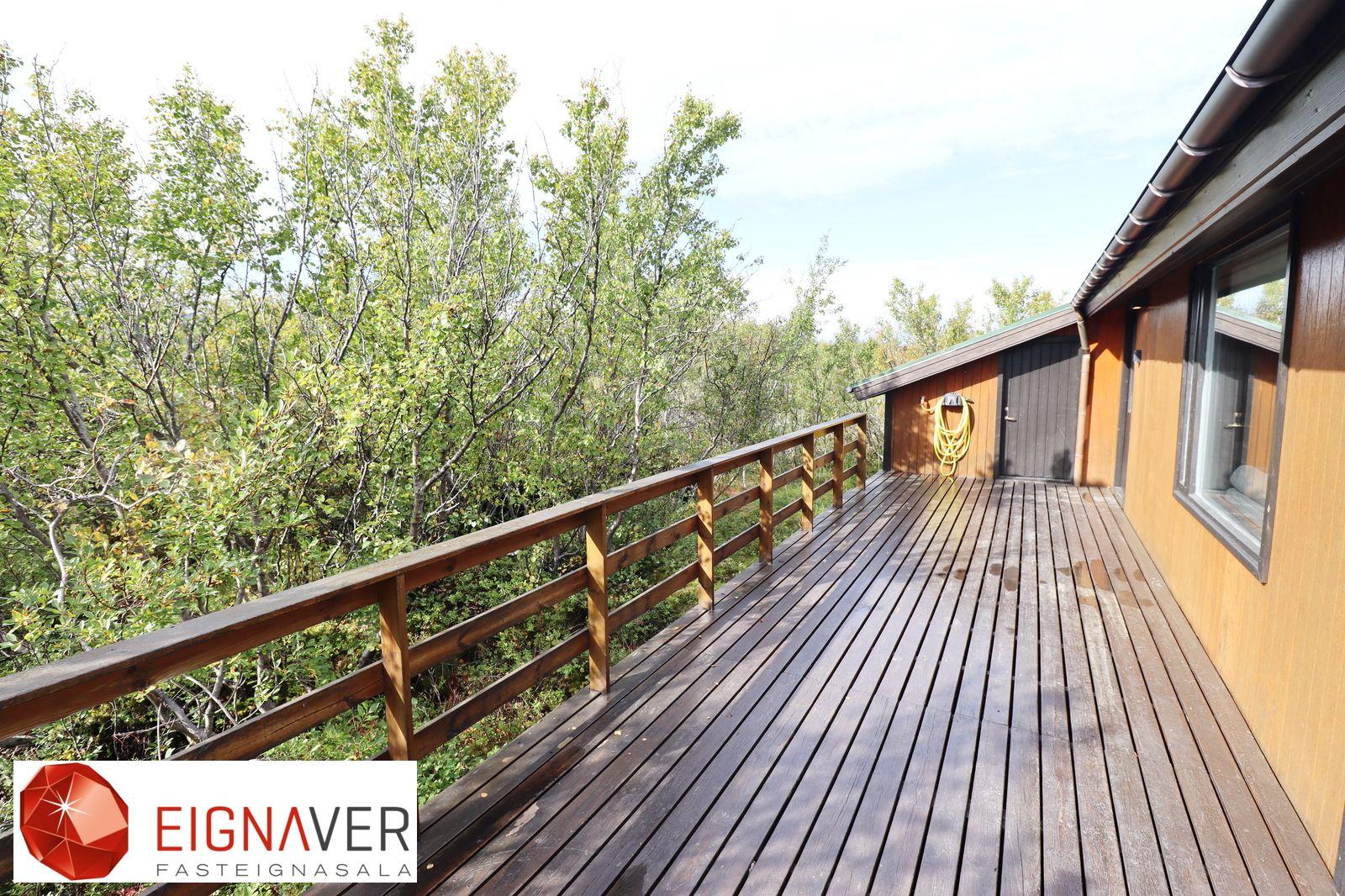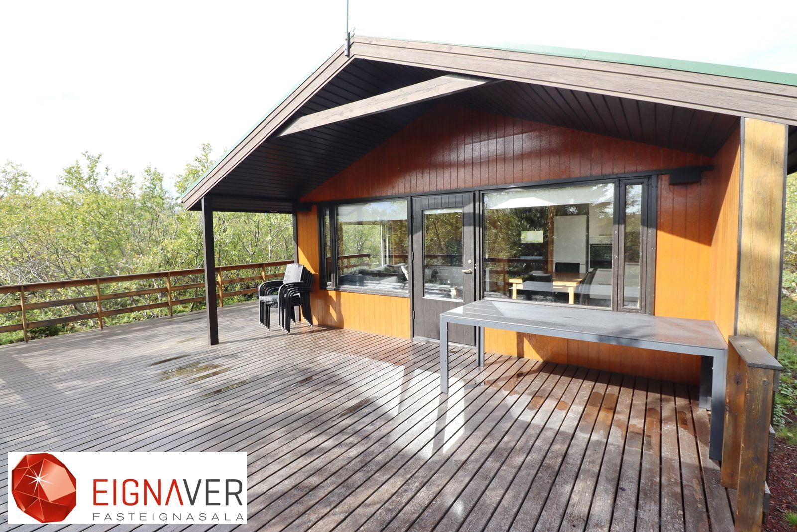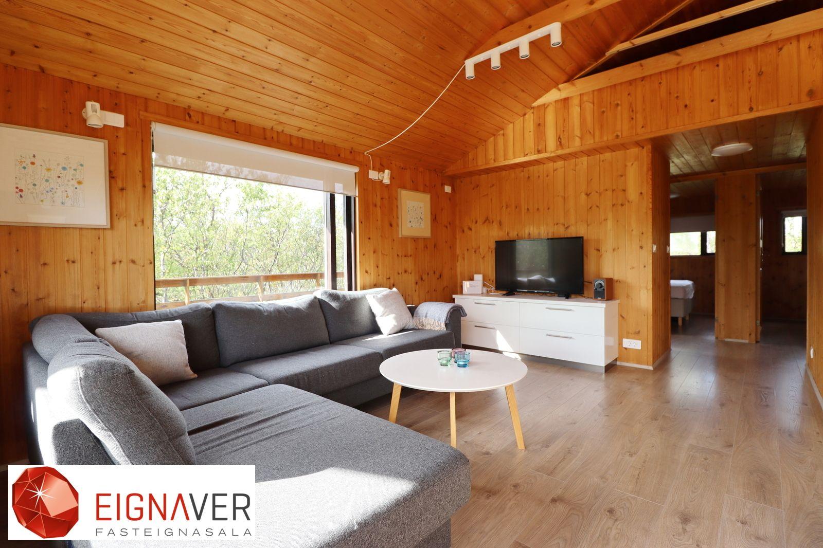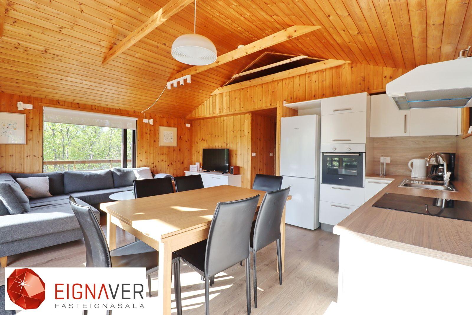 Sumarhúsið er eitt af 6 húsum sem eru til sölu núna á sama svæði og tilvalið í ferðaþjónustu. Fasteignin er í einkasölu hjá Eignaveri fasteignasölu.