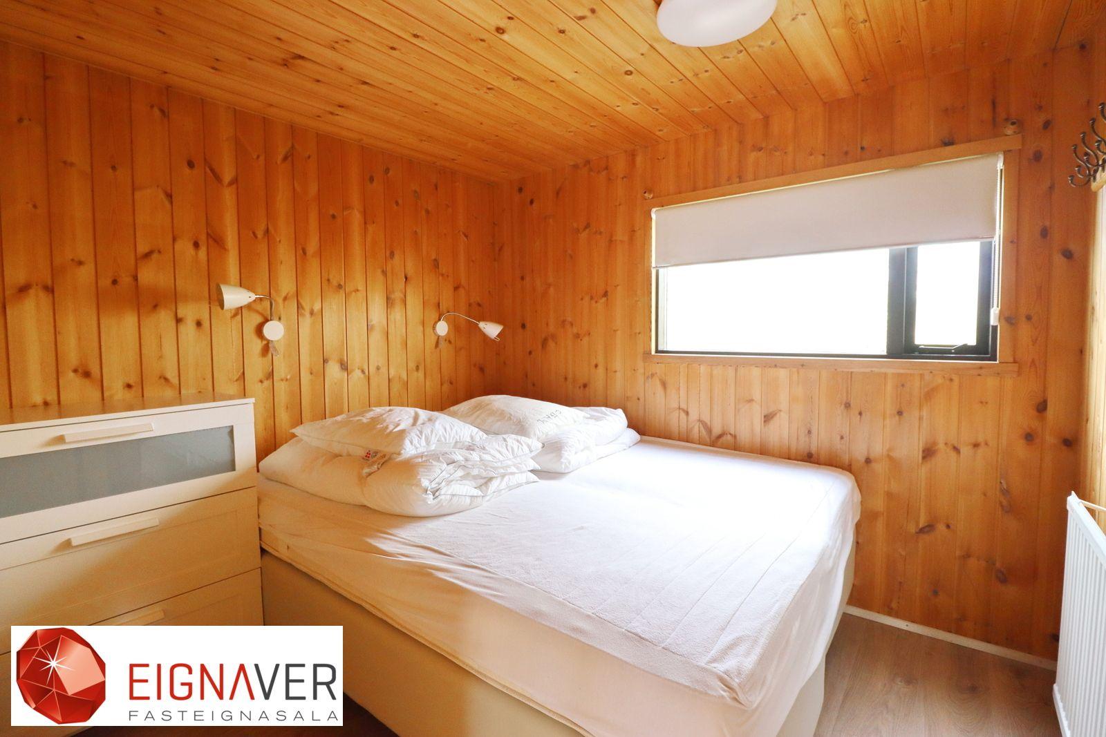 Svefnherbergin eru tvö í húsinu og er þau ágætlega rúmgóð. Parket á gólfum.