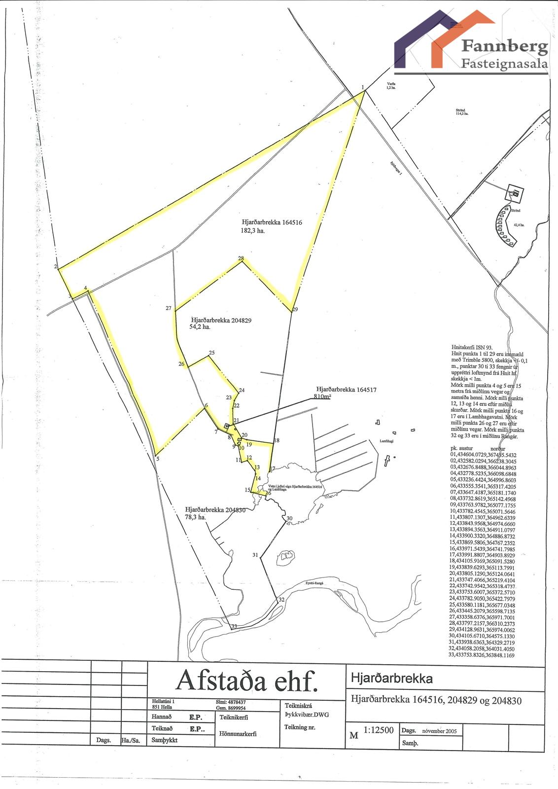 JÖRÐIN HJARÐARBREKKA Í RANGÁRÞINGI YTRA. Jörðin er 182,3 hektarar að stærð og aðkoma að henni er frá Oddavegi á Rangárvöllum. Landið samanstendur af valllendi, mýrlendi, uppgræddum söndum og svo landi sem er minna gróið. Ræktað land er skráð 43 hektarar. Á jörðinni er 153,8 fm íbúðarhús byggt árið 2011. Húsið er byggt úr timbri á steyptan sökkul og er klætt að utan með stálklæðningu. Húsið telur; anddyri, gang, sambyggt eldhús og stofu, fjögur svefnherbergi, baðherbergi og þvottahús. Á staðnum eru einnig nokkur gömul útihús, sem þarfnast viðhalds og endurbóta. Heildarstærð þeirra er skráð 482 fm. Jörðinni fylgir veiðréttur í Eystri Rangá og upprekstrarréttur á Rangárvallaafrétt. Ennfremur veiðiréttur í Lambhagavatni sem er á mörkum jarðanna Hjarðarbrekku og Lambhaga.