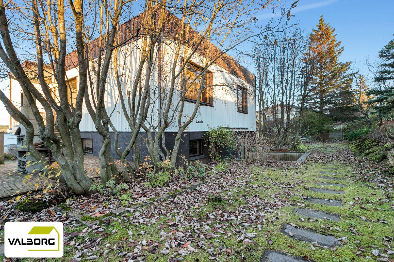 Lóð er tyrft og með töluverðum trjágróðri. Stærð lóðar 902 fm.
