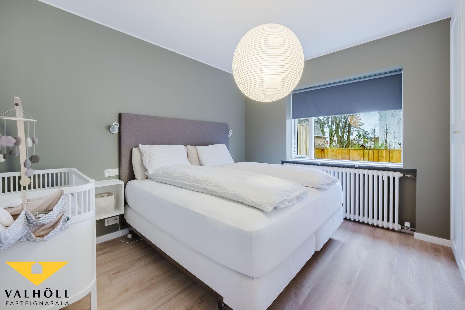 Íbúðin var endurnýjuð mikið fyrir tveimur árum, að sögn seljanda var skipt um allar lagnir bæði neysluvatnslagnir og ofnalagnir, allt rafmagn var endurnýjað, bæði tafla og tenglar og dregið í að nýju. Allir skápar eru nýjir, nýjar hurðir, ný gólfefni og eldhús og baðherbergi endurnýjað með nýjum tækjum.  Skipt var um alla glugga í íbúðinni og sett hurð út á nýjan sólpall með skjólgirðingum.  Um er að ræða mjög fallega íbúð með sérinngangi á frábærum stað við Hæðargarð í Reykjavík.  Örstutt í skóla og leiksskóla.  Frábær eign fyrir fyrstu kaupendur.