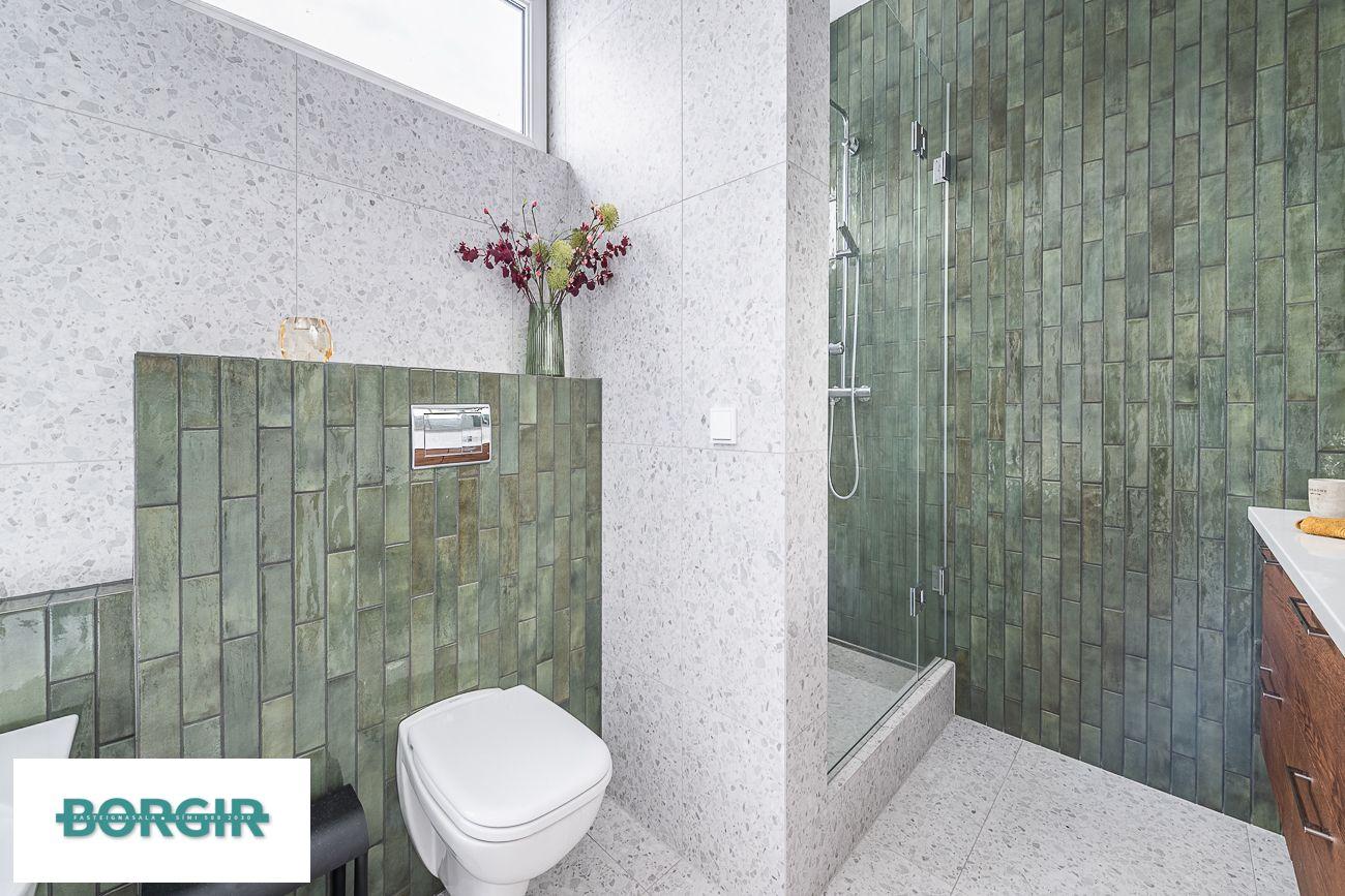 þvottahús er í sameiginlegu rými, endurnýjað 2023 með nýjum flísum í hólf og gólf, stór sturtuklefi með glerhurð, upphengt salerni og ný rúmgóð baðinnrétting, Innrétting fyrir þvottavél og þurrkara í vinnuhæð.