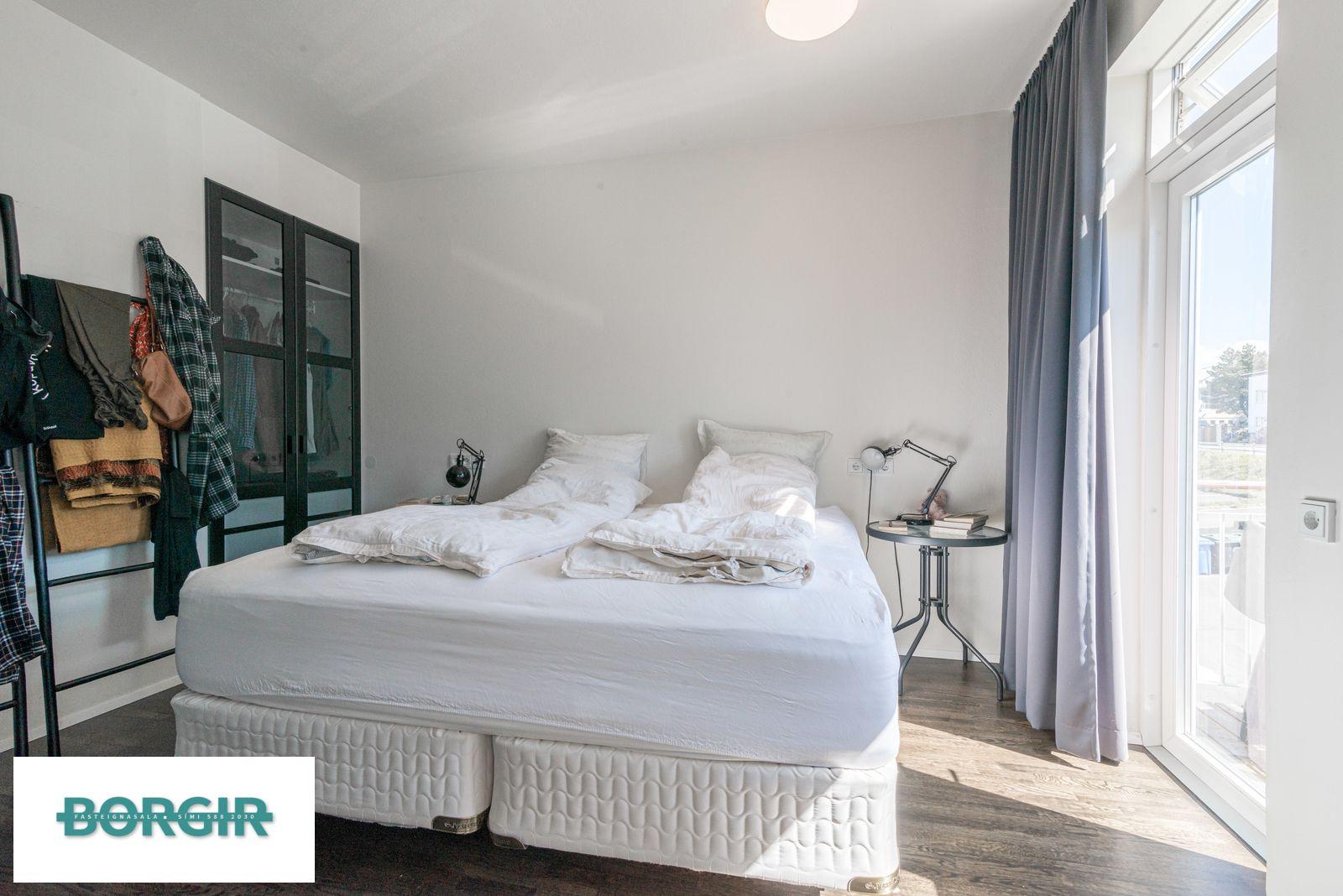 Barnaherbergi er parketlagt, er mjög rúmgott með góðum opnum fataskáp