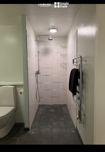 Íbúðin sjálf skiptist í eldhús, stofu, svefnherbergi og baðherbergi með tengi fyrir þvottavél og þurrkara. Á baðherberginu er upphengt salerni, handklæðaofn, sturta og gluggi. Fataskápur í svefnherbergi. Gólfefni: parket og flísar að mestu á gólfum.