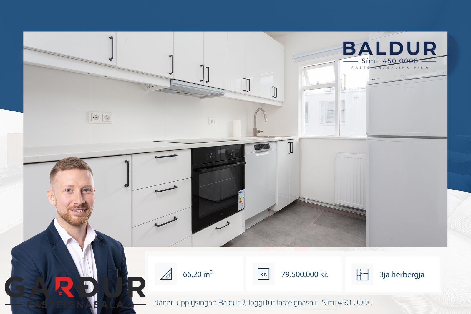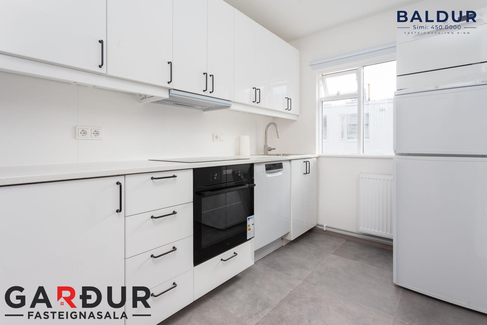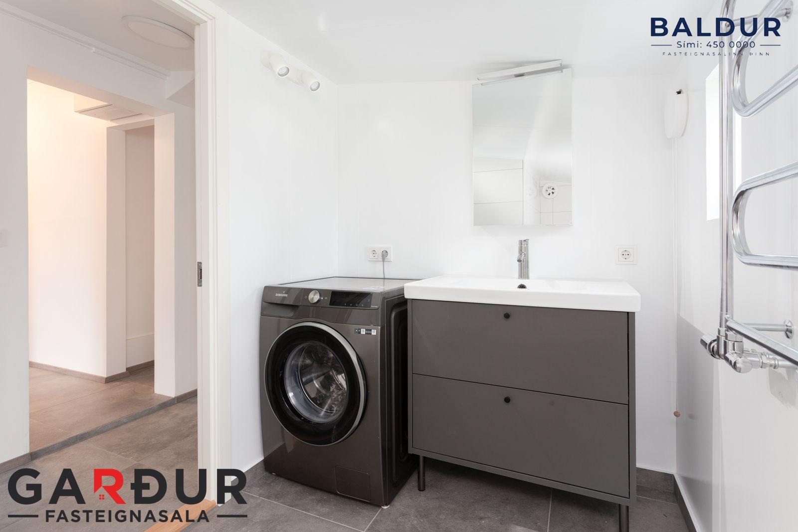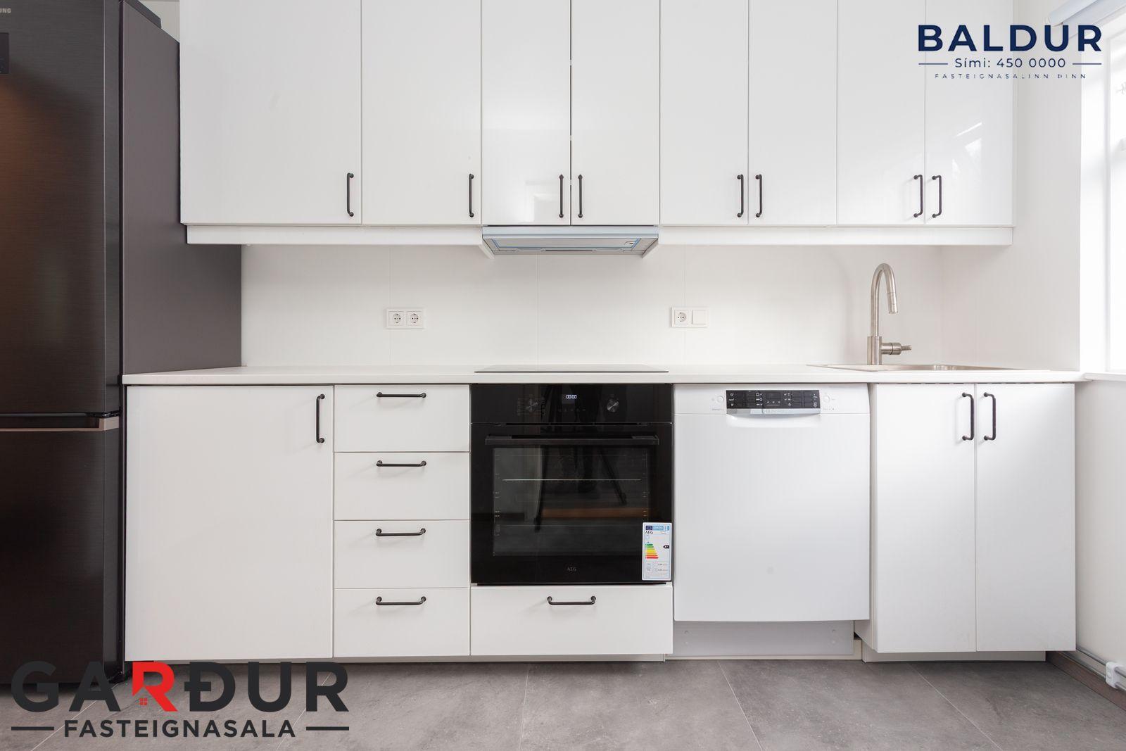 Nánari lýsing: Anddyri: Nýtt gólfefni og nýjar hurðar frá Birgisson. Eldhús: Flísar á gólfi. Ný eldhúsinnrétting frá Birgisson, AEG helluborð og bakaraofn frá Rafha, Samsung ísskápur og vönduð uppþvottavél. Ný Grohe blöndunartæki Stofa/borðstofa: Björt og rúmgóð með nýju vinyl gólfefni. Hjónaherbergi: Nýmálað með nýju gólfefni og hurð frá Birgisson. Barnaherbergi: Nýmálað með nýju gólfefni og hurð frá Birgisson. Baðherbergi: Flísar á gólfi og í sturtu. Ný innrétting með skúffum, Grohe blöndunartæki, vegghengt salerni frá Tengi, tengi fyrir þvottavél og þurrkara. Ný Samsung þvottavél fylgir. Sturtan flísalögð með flísum frá Álfaborg og veggir málaðir með háglans lakki.
