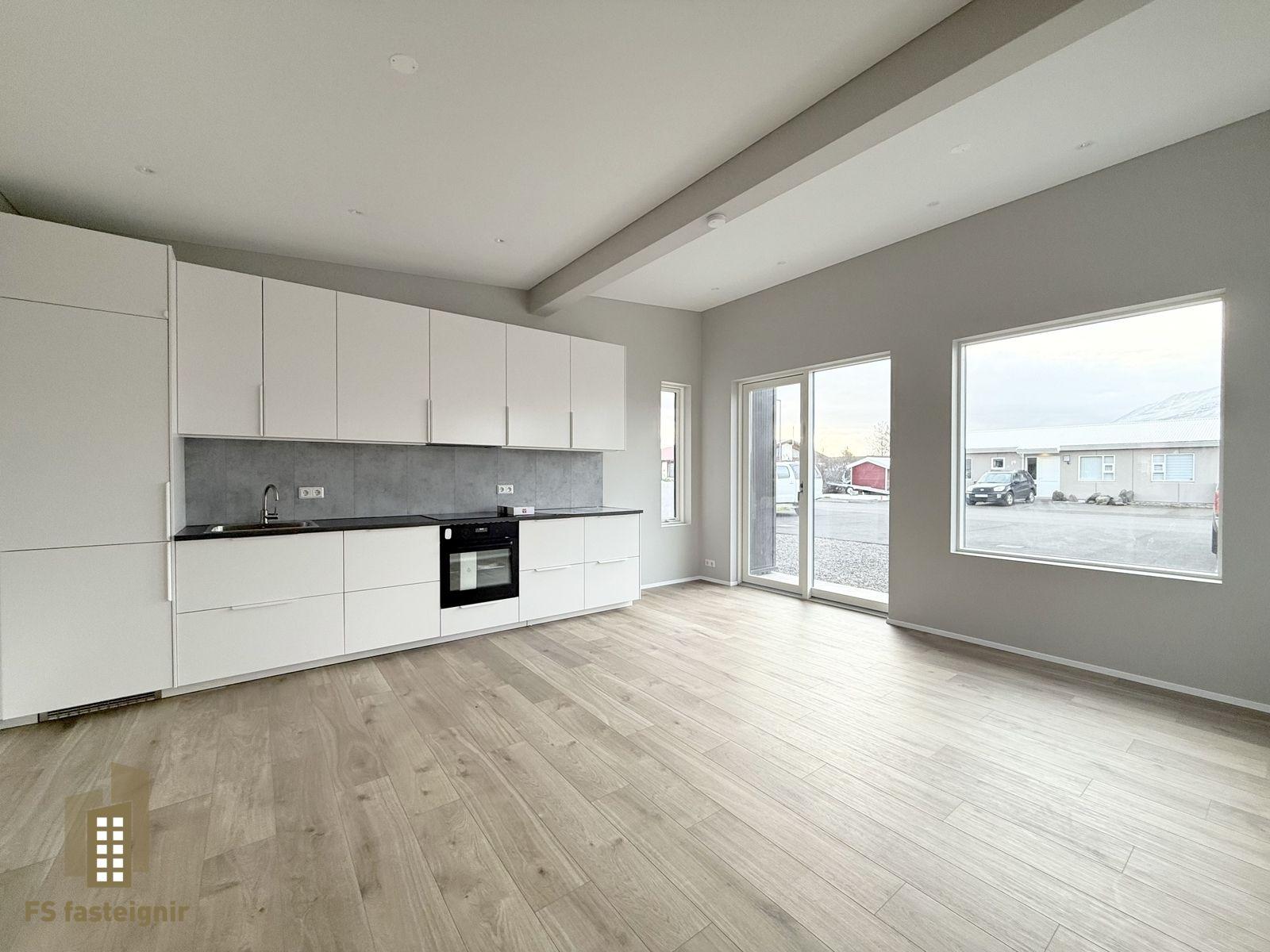 Öldugata 12b Einstaklega falleg og vel skipulögð 3ja herbergja raðhúsaíbúð 93,8 m² á einni hæð í nýbyggingu á Árskógsandi. ***Eignin er fullbúin og tilbúin til afhendingar*** Eignin skiptist í forstofu, eldhús og stofu í opnu rými, tvö svefnherbergi og baðherbergi með þvottaaðstöðu. Eigninni fylgir sér geymsla skráð 7,7 m² að stærð staðsett í sameignlegu rými milli íbúðar A og B.