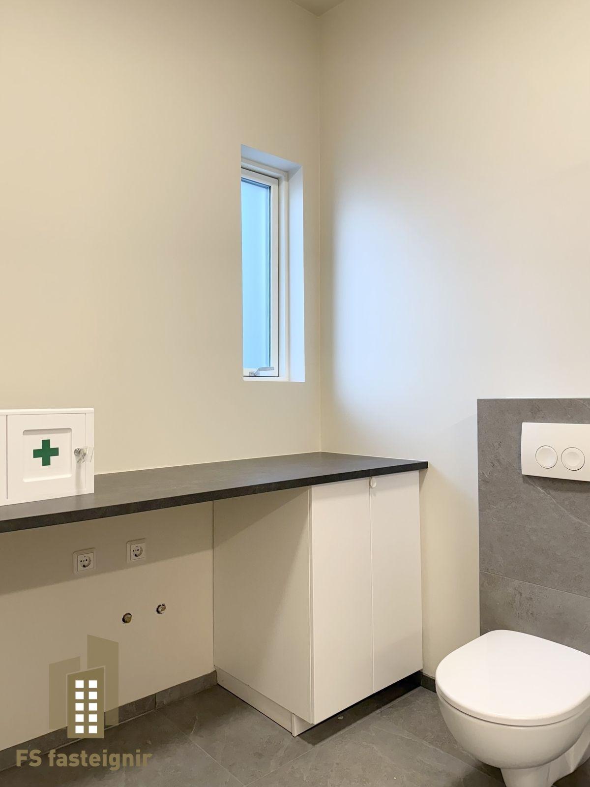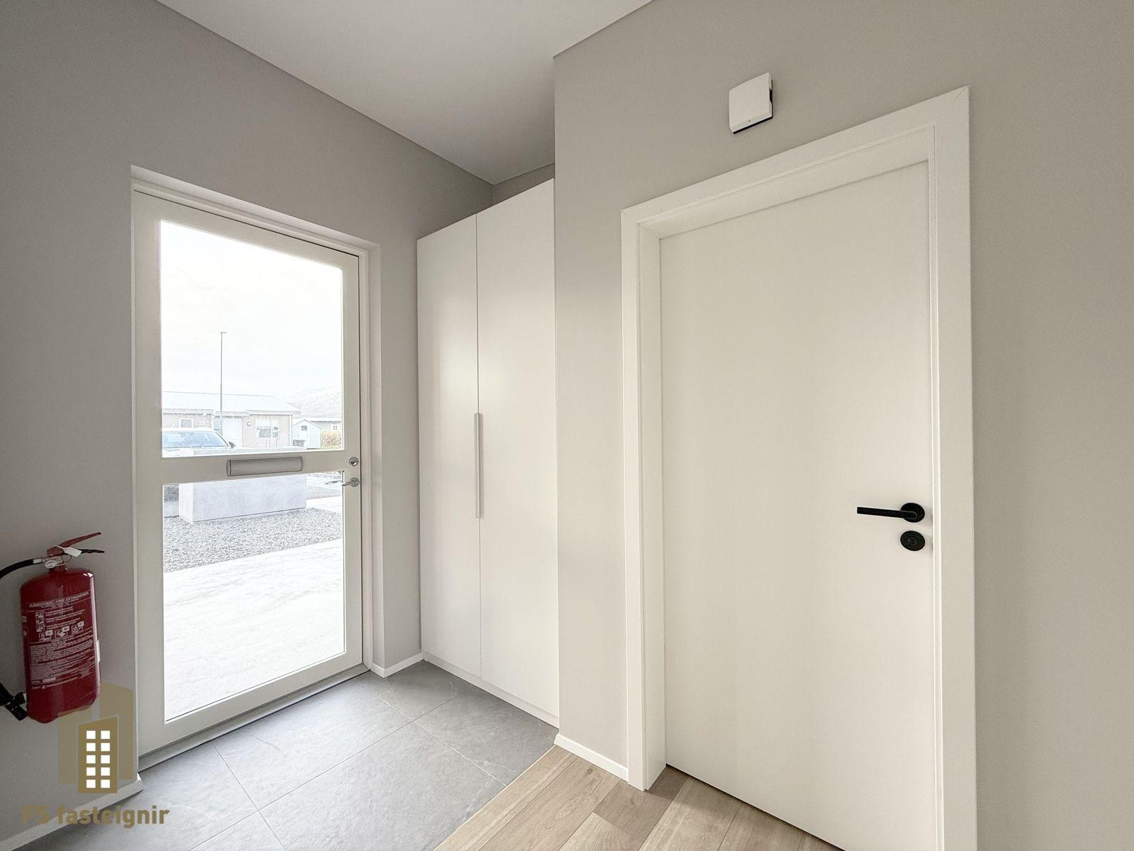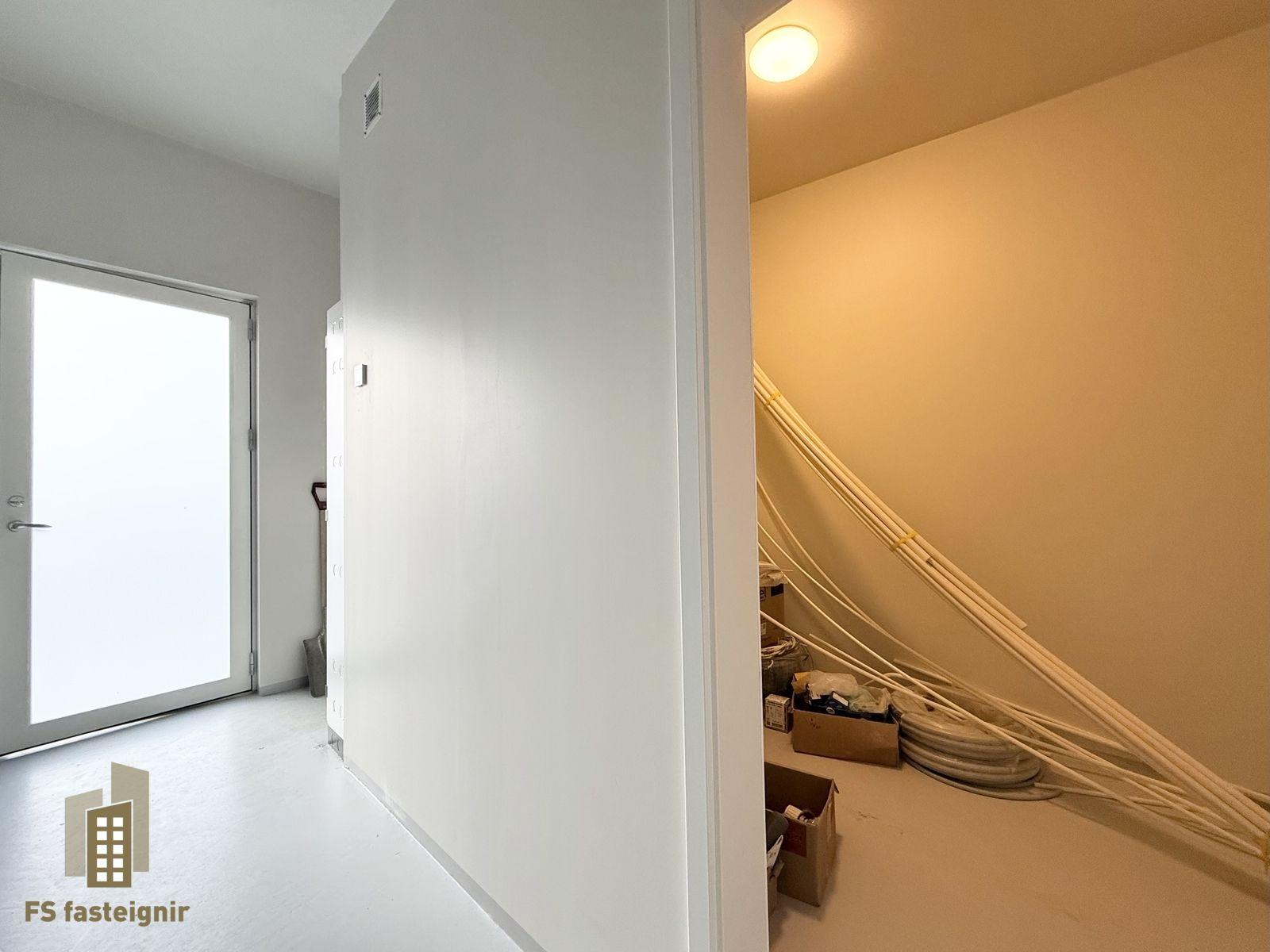 • Rúmgóð herbergi með góðum skápum. • Uppþvottavél og ísskápur er innbyggt og fylgir með. • Upptekin loft í alrými með hljóðdempunardúk og innfeldri lýsingu. • Vagna og hjólageymsla. • Rör verður lagt frá aðaltöflu að bílastæði fyrir rafhleðslu á bifreiðum. • Varmaskiptir fyrir neysluvatn, vönduð hreinlætistæki. • Viðhaldslítil álklæðning utanhúss, álklæddir gluggar. • Upphituð stétt og verönd.