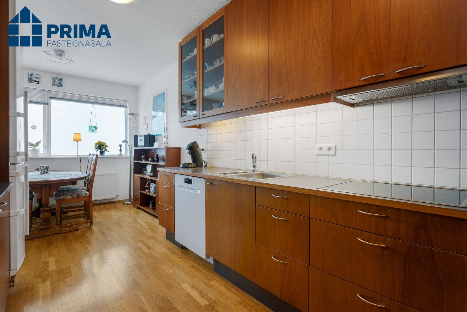 Eldhús er með góðu skápaplássi og sérþvottahús er innan íbúðar.