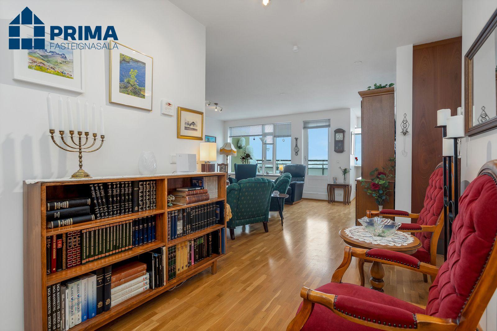 Rúmgóðar 12 fm svalir eru til suðvesturs með miklu og fallegu útsýni, Sérgeymsla er í sameign