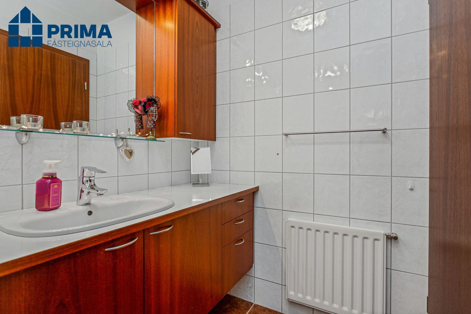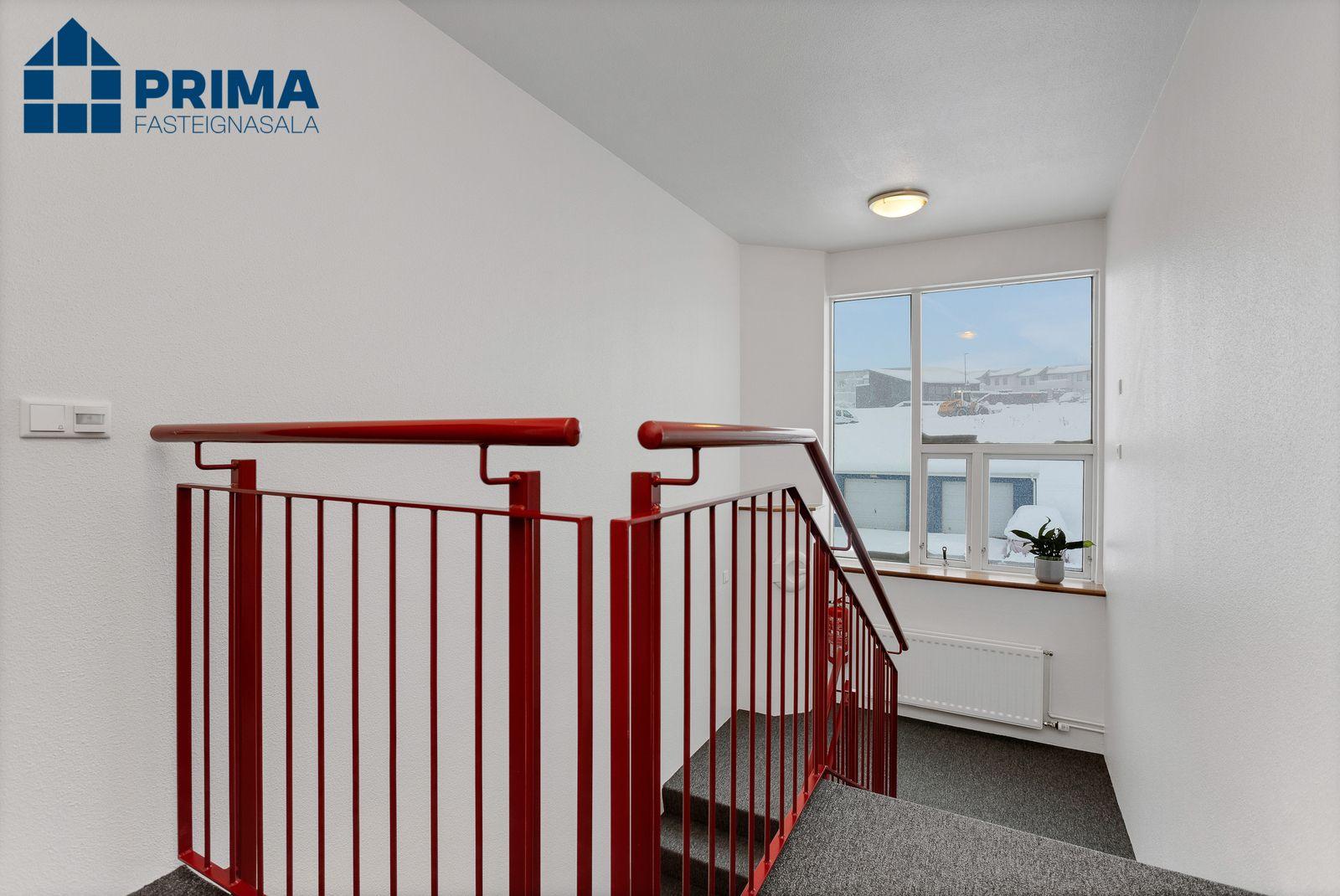 Rúmgott baðherbergi er bæði með sturtu og baðkari. Hér er stutt í alla almenna þjónustu, leik- og grunnskóla, sundlaug, heilsugæslu, apótek og verslanir.