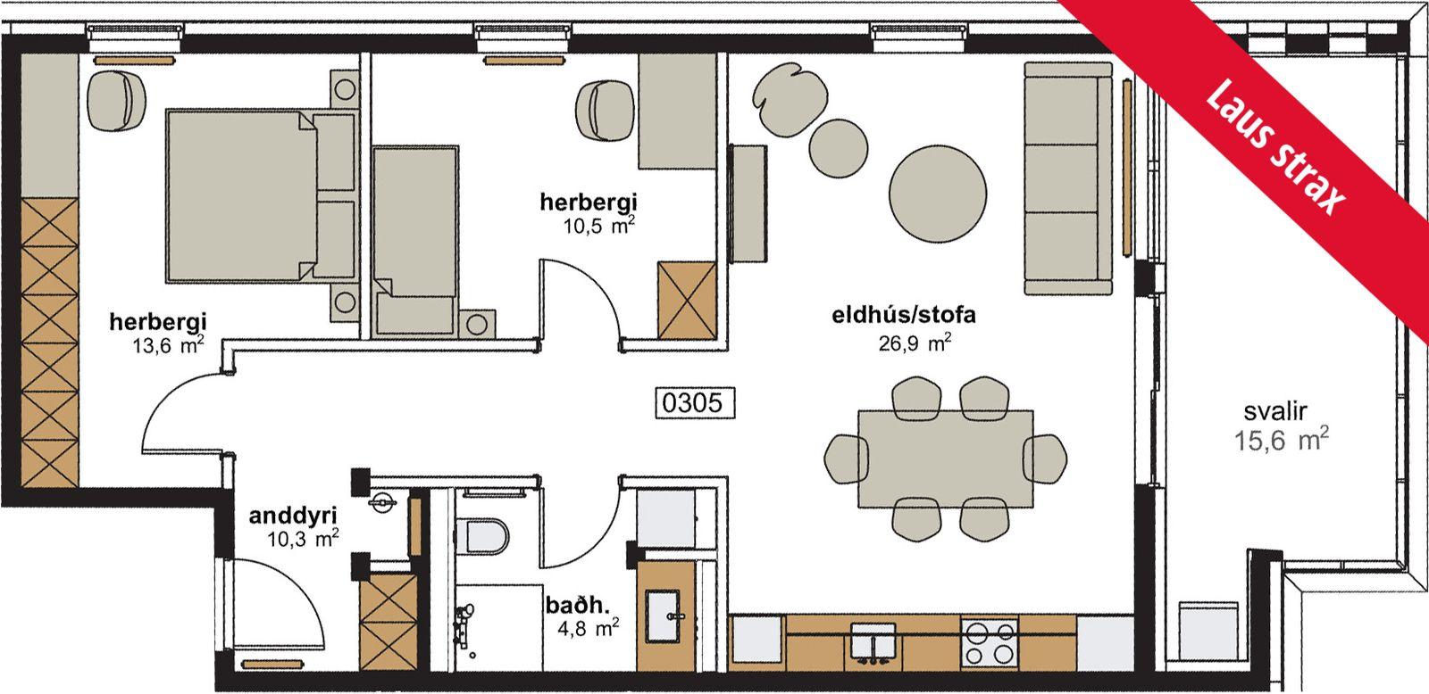 Guðrún Þórhalla og Guðmundur Þór Júlíusson löggiltir fasteignasalar hjá RE/MAX fasteignasölu kynna: Fallega 3ja herbergja íbúð á 3 hæð, merkt 305, stærð 81,0 fm. Íbúðin er 77,1 fm ásamt 3,9 fm geymslu og sér stæði í bílageymslu.