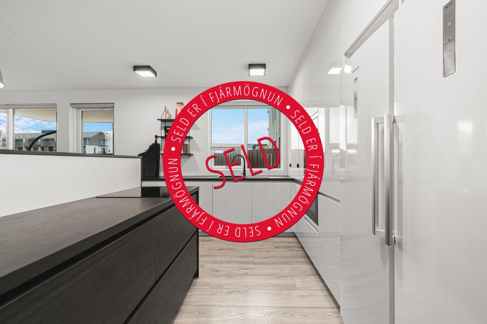 útgang út á 27,4fm pall sem snýr í suður.Eldhús: Er virkilega vel búið með Miele raftækjum, tvöföldum ofni með örbylgju ásamt innbyggðir uppþvottavél.