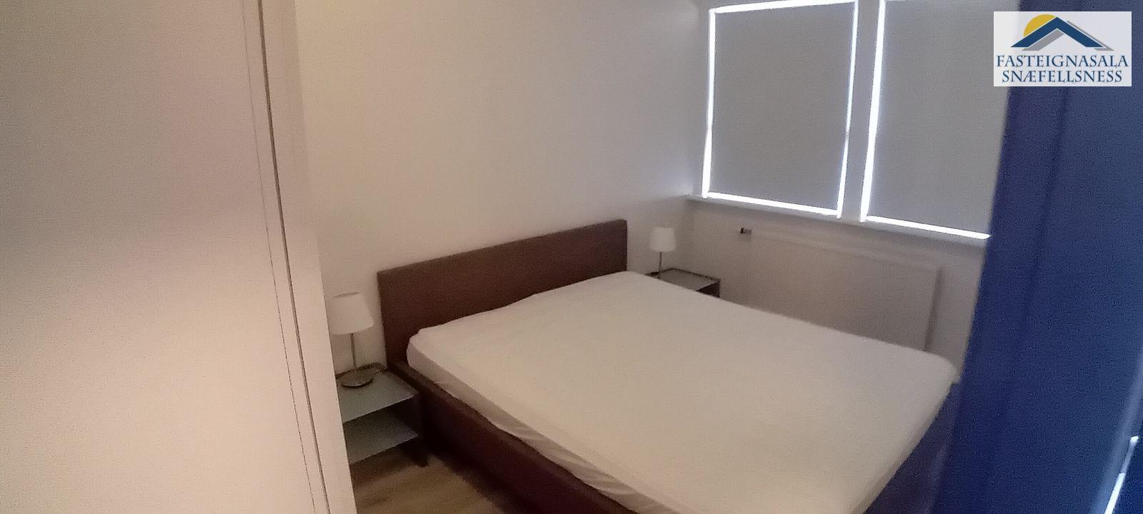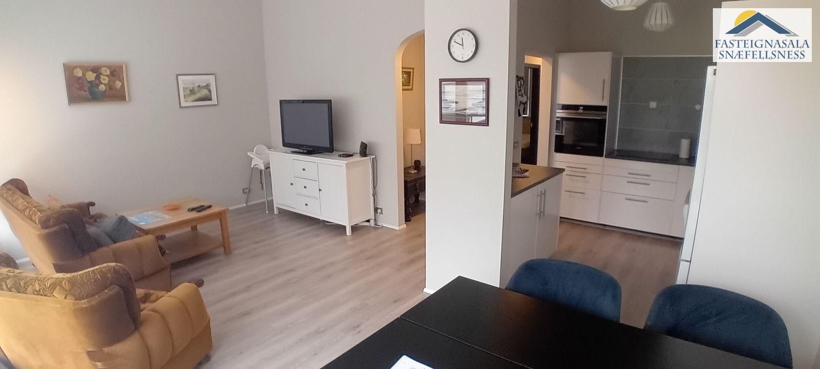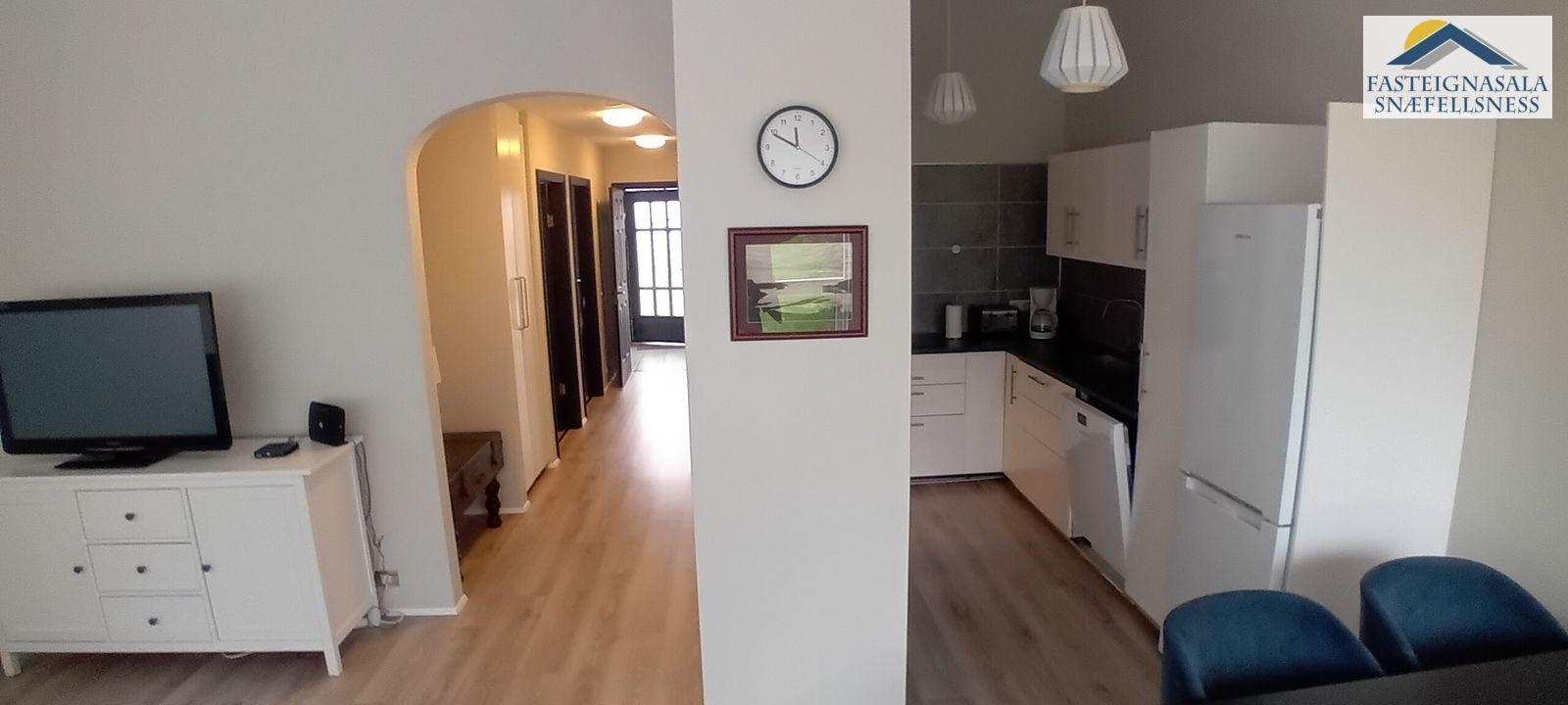 Íbúðin skiptist í forstofu, hol, tvö svefnherbergi, baðherbergi, þvottahús og samliggjandi stofu og eldhús. Þá er svefnloft/geymsla sem farið uppá úr öðru herberginu.