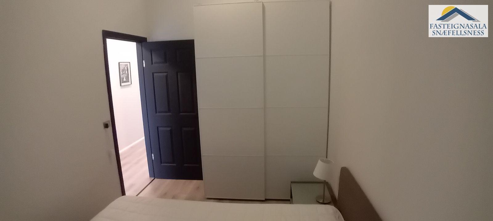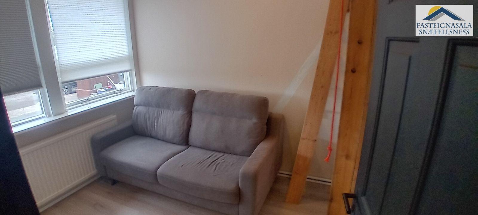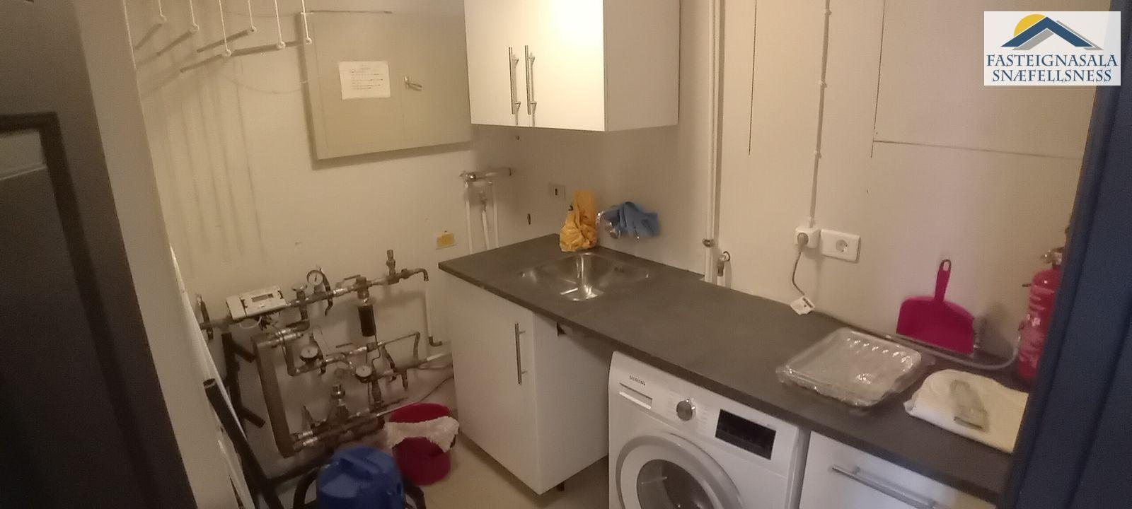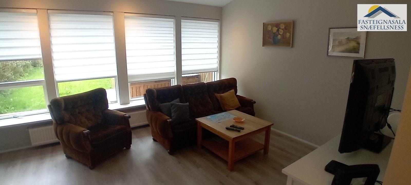 Íbúðin skiptist í forstofu, hol, tvö svefnherbergi, baðherbergi, þvottahús og samliggjandi stofu og eldhús. Þá er svefnloft/geymsla sem farið uppá úr öðru herberginu.