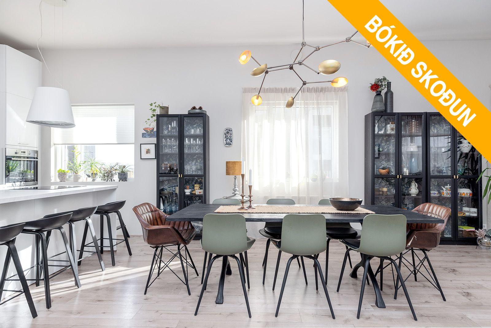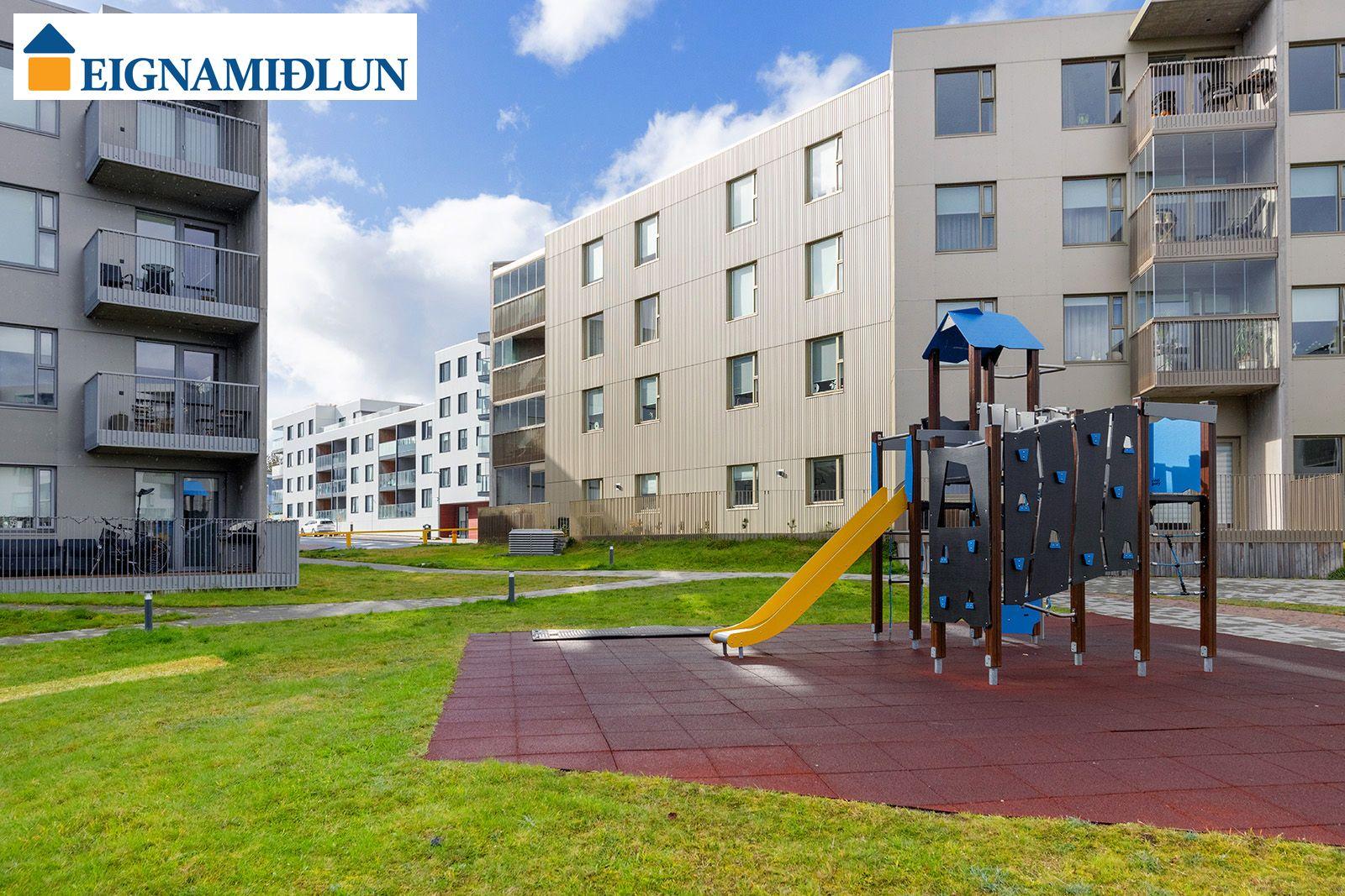 Nánari upplýsingar veitir Gunnar Bergmann Jónsson í síma 839-1600 eða gunnarbergmann@eignamidlun.isNánari lýsing:Gengið er inn í íbúðina af fyrstu hæð, stigalaust aðgengi. Íbúðin er með mikilli lofthæð en það setur mikinn svip á íbúðina. Forstofugangur með skápum. Tvö barnaherbergi, þvottahús og baðherbergi eru á gangi áður en komið er inn í stórt alrými eignarinnar. Parket á öllum gólfum nema votrýmum sem eru flísalögð. Fataskápar í öllum svefnherbergjum.