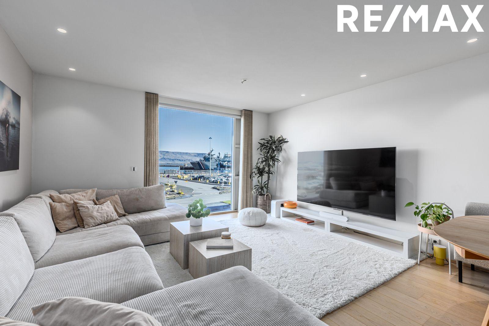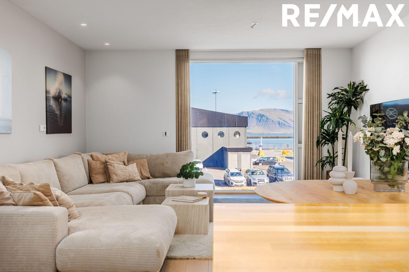RE/MAX og Oddur fasteignasali kynna í einkasölu:Einstaklega glæsileg og björt íbúð á 2. hæð að Tryggvagötu 13. Íbúðin stendur í hjarta miðborgarinnar með fallegt útsýni yfir Reykjavíkurhöfn. Eignin skiptist í anddyri, stofu, borðstofu og eldhús í alrými, opið svefnherbergi með walk-in skáp og baðherbergi, gestasalerni og þvottahús. Suðursvalir sem gengið er út á frá svefnherbergi. Sér geymsla í kjallara. Eikarparket er á öllum gólfum að undanskildum votrýmum. Eldhústæki frá AEG. Hiti er í öllum gólfum. Innréttingar frá HTH. Snertilaust lyklaaðgengi að íbúð, sameignarrými og útihurðum.