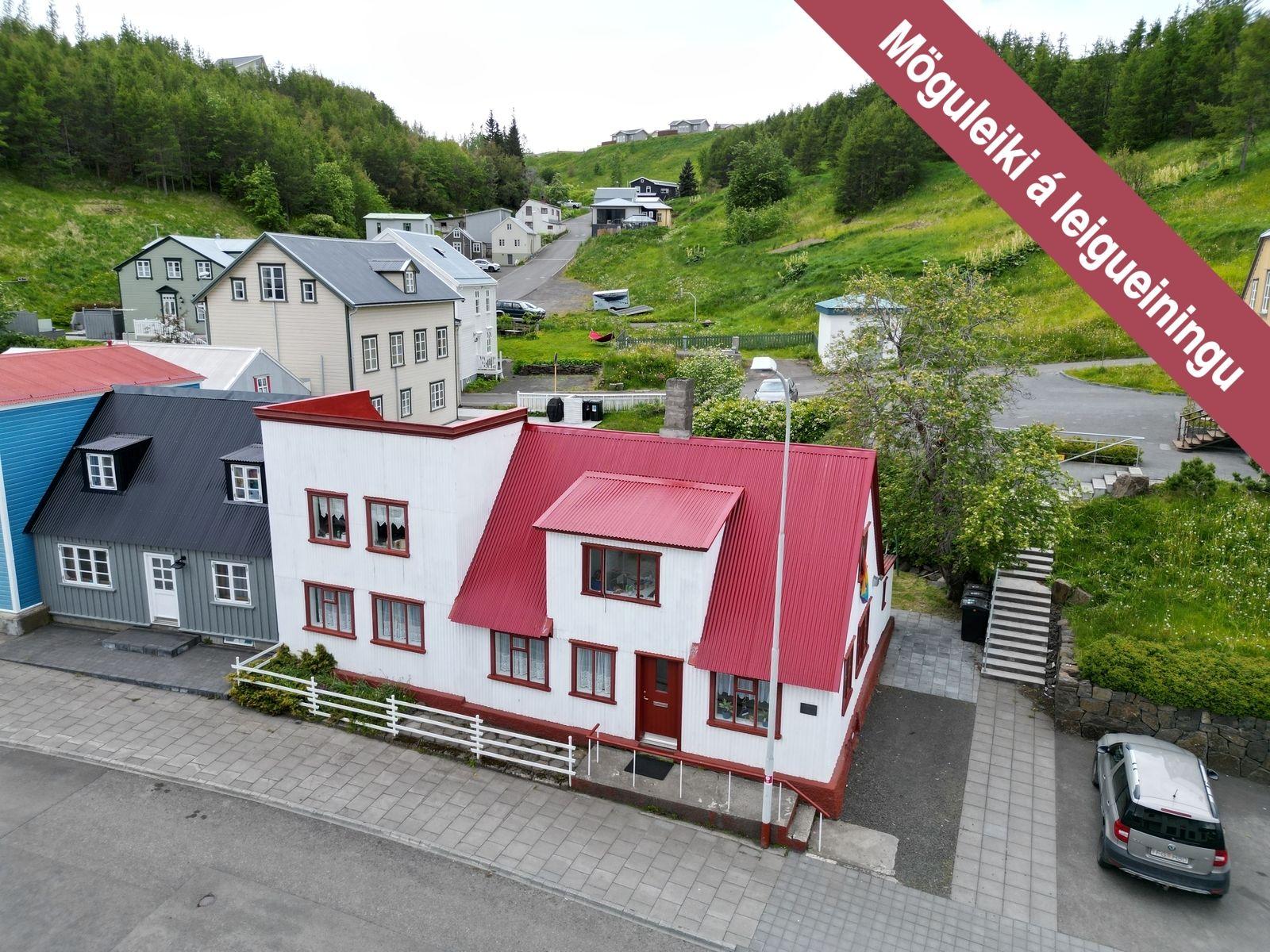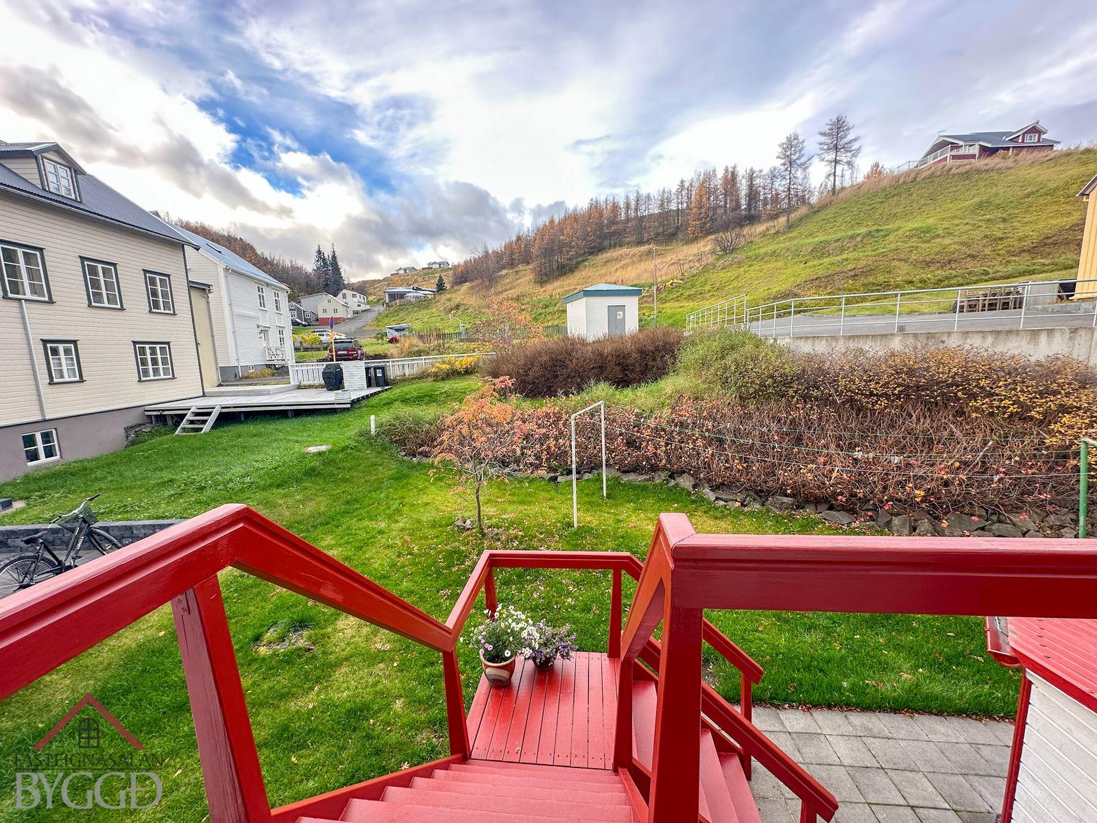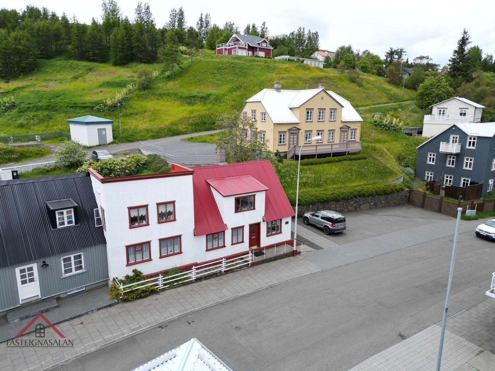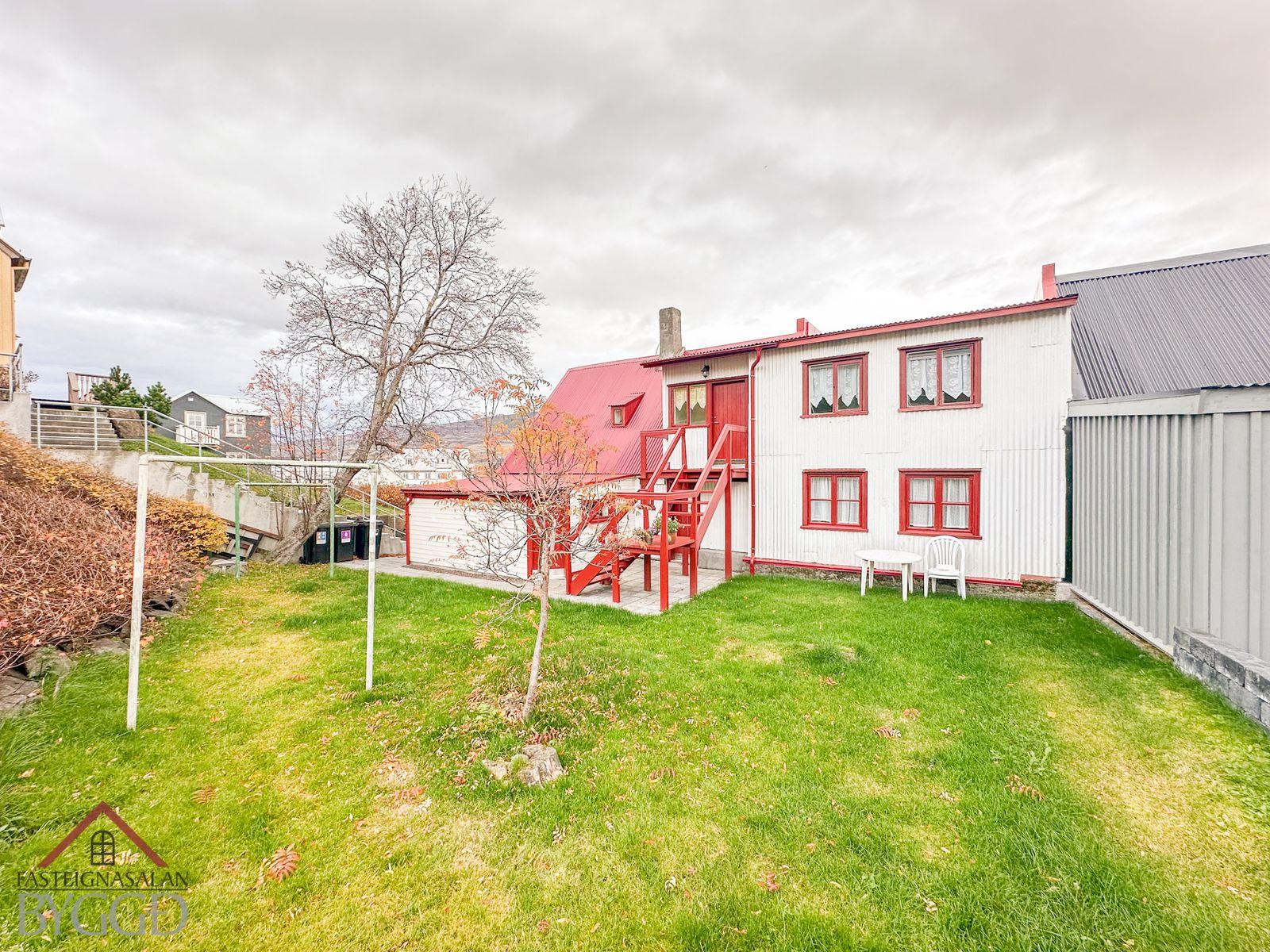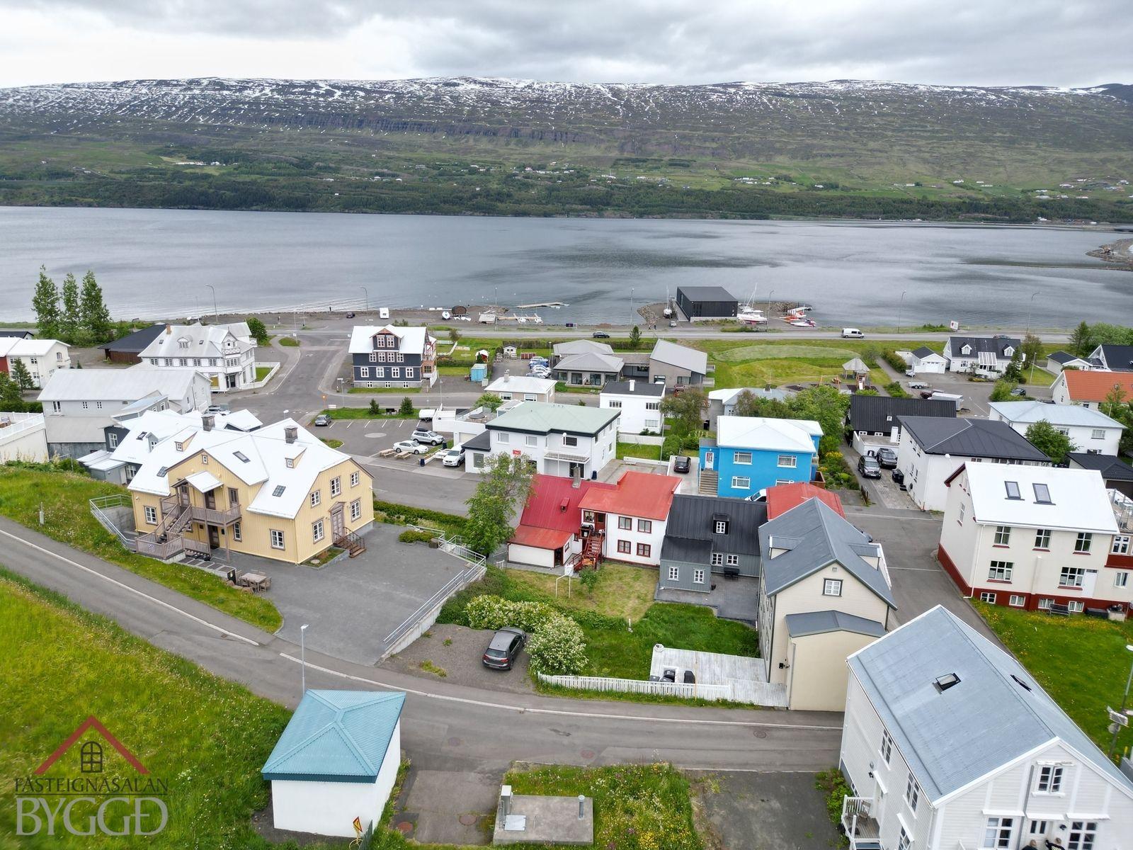 Um er að ræða tveggja íbúða hús í innbænum á Akureyri. Eignin er samtals 159,5 fm., neðri hæð er skráð 92,5 með geymslu og efri hæð skráð 67 fm. og er hún undir súð að hluta svo gólf fermetrar eru fleiri. Ekki er opið á milli íbúða og hefur efri hæð sér inngang að utan sem snýr til vesturs. Búið er að gera miklar endurbætur á eigninni.