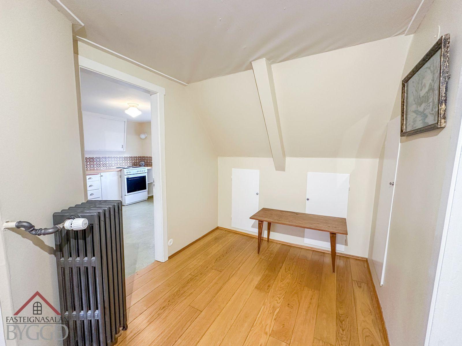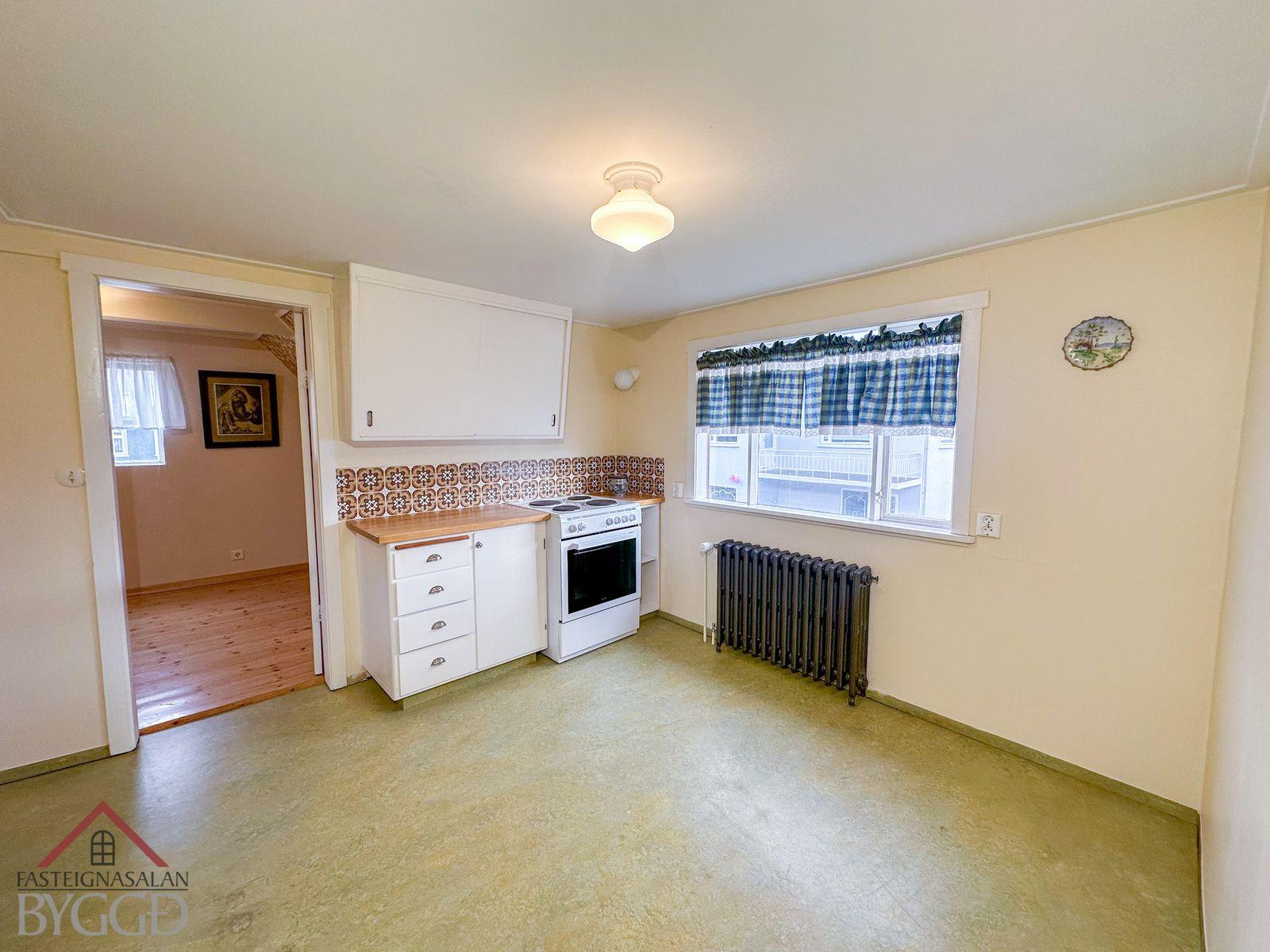 Annað: -Búið er að endurnýja útidyrahurð, handlistar á útitröppum að inngangi endurnýjuð og íbúðin öll máluð nýlega. Einnig verið gerðar endurbætur á eldhúsinnréttingu. -Virkilega skemmtilegt hús með möguleika á leigueiningu á t.d. efri hæð þar sem eru tvö svefnherbergi. -Hiti í stéttum bakvið hús. -Möguleiki á hleðslustöð fyrir rafmagnsbíl. -Eignin stendur á eignarlóð sem er sólrík og skjólsæl.