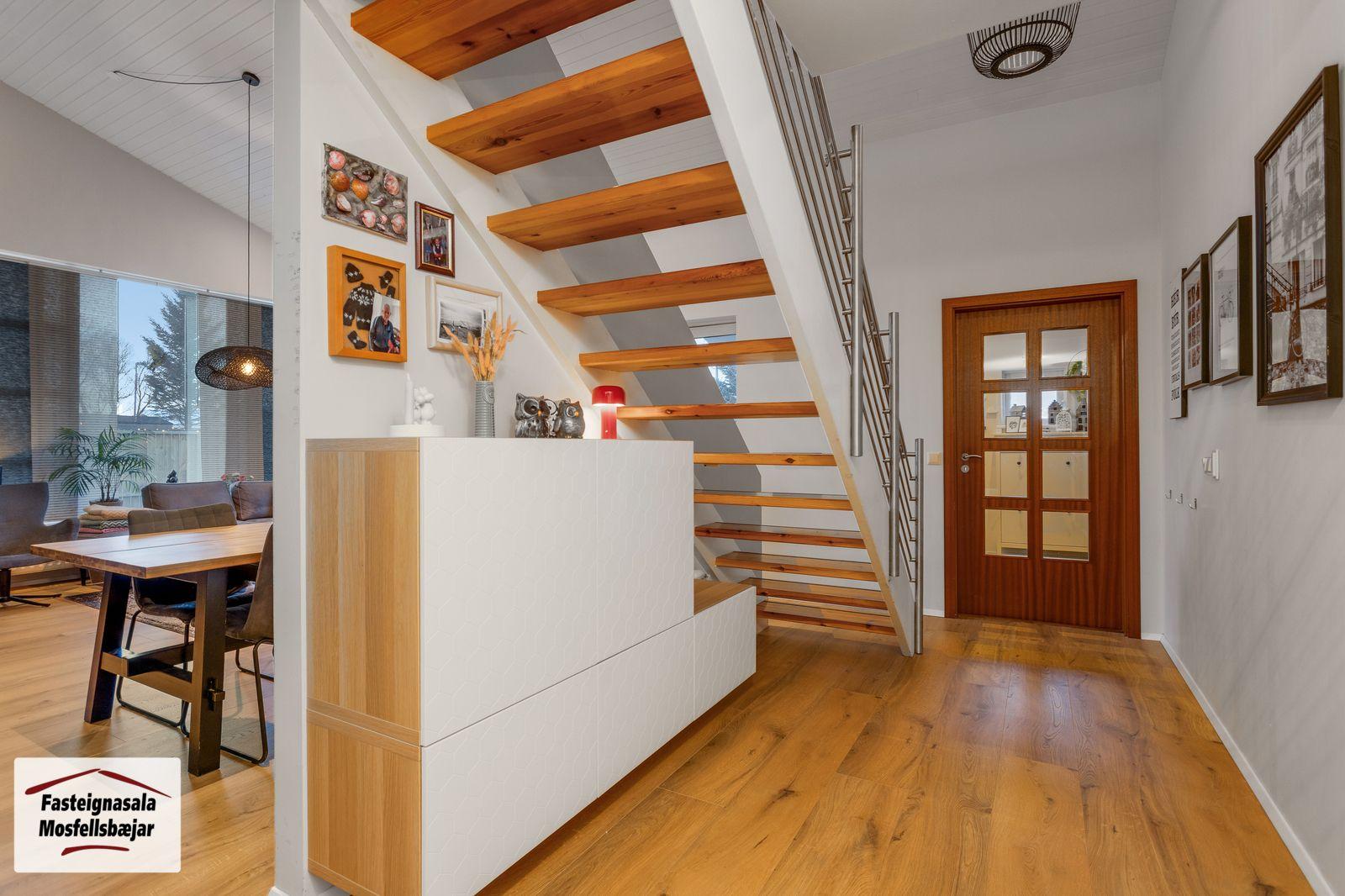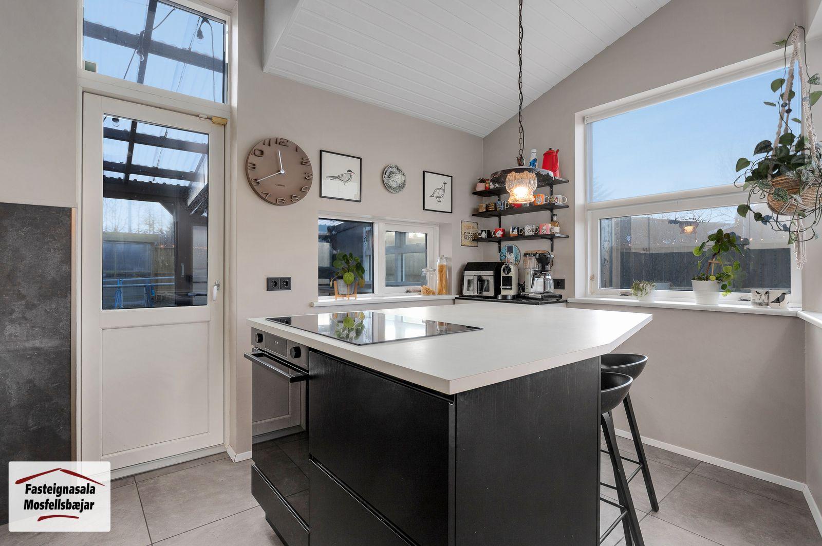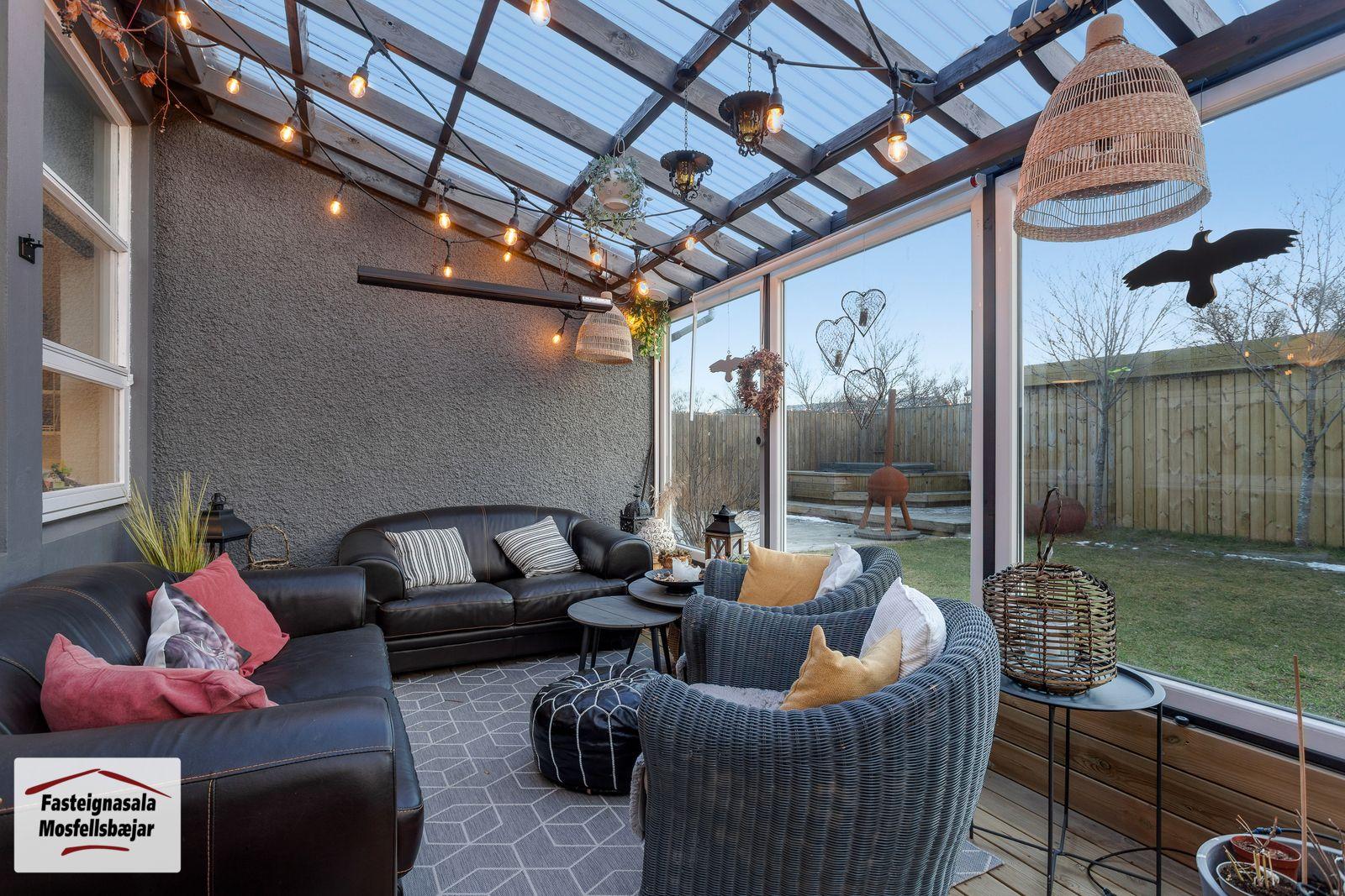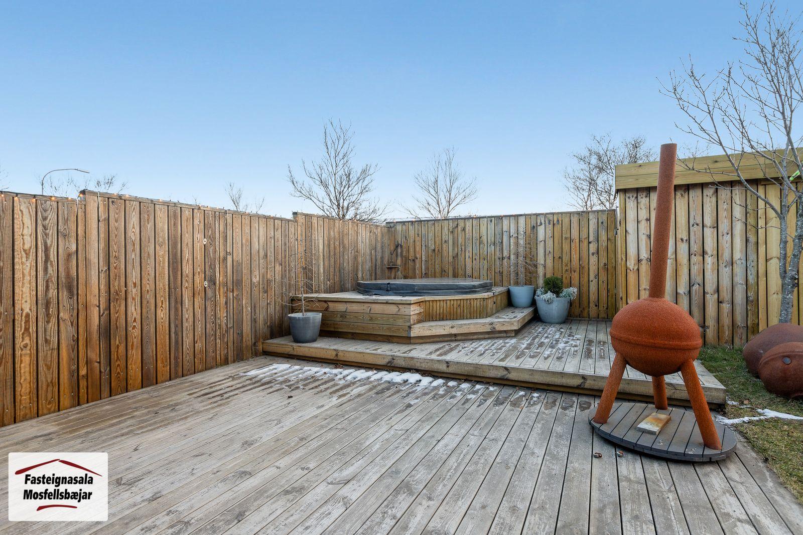 ** Hafðu samband og bókaðu skoðun - Svanþór Einarsson, löggiltur fasteignasali - svanthor@fastmos.is eða 698-8555 - Theodór Emil Karlsson, löggiltur fasteignasali - teddi@fastmos.is eða 690-8040 - Steingrímur Benediktsson, löggiltur fasteignasali - steingrimur@fastmos.is eða 862-9416 **Fasteignasala Mosfellsbæjar kynnir: Fallegt og vel skipulagt 179,6 m2 endaraðhús með innbyggðum bílskúr Spóahöfða 2 í Mosfellsbæ. Eignin skiptist í eldhús, stofu/borðstofu, gang, 4-5 svefnherbergi, rúmgott risloft/sjónvarpstofu, baðherbergi, forstofu, þvottahús og bílskúr með geymslulofti. Eignin er skráð 179,6 m2, þar af raðhús 150,0 m2 (þar af milliloft 19,1 m2) og bílskúr 29,6 m2. Milliloftið er mun stærra en skráðir fermetrar þar sem það er að hluta undir súð og auk þess búið að gera herbergi inn af því. Í bakgarði er garðskáli og timburverönd í suðausturátt með heitum potti, úti sturtu. Einnig er þar góð geymsla og lítið gróðurhús. Fyrir framan hús er önnur timburverönd og hellulagt bílaplan með snjóbræðslu og hleðslustöð sem fylgir. Vinsæl staðsetning, stutt í golfvöll, Lágafellskóla, leikskólann Hulduberg og Lágafellslaug. Samkvæmt upplýsingum frá seljanda hefur verið farið í framkvæmdir og endurbætur á eigninni á síðustu árum:Árið 2019-2020 var útbúin garðstofa, timburverönd með heitum potti og útisturta