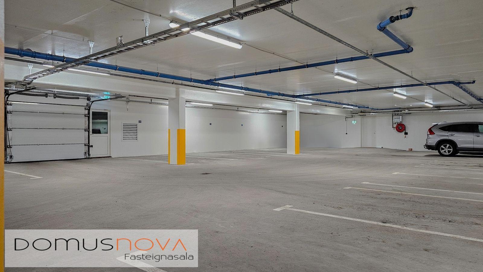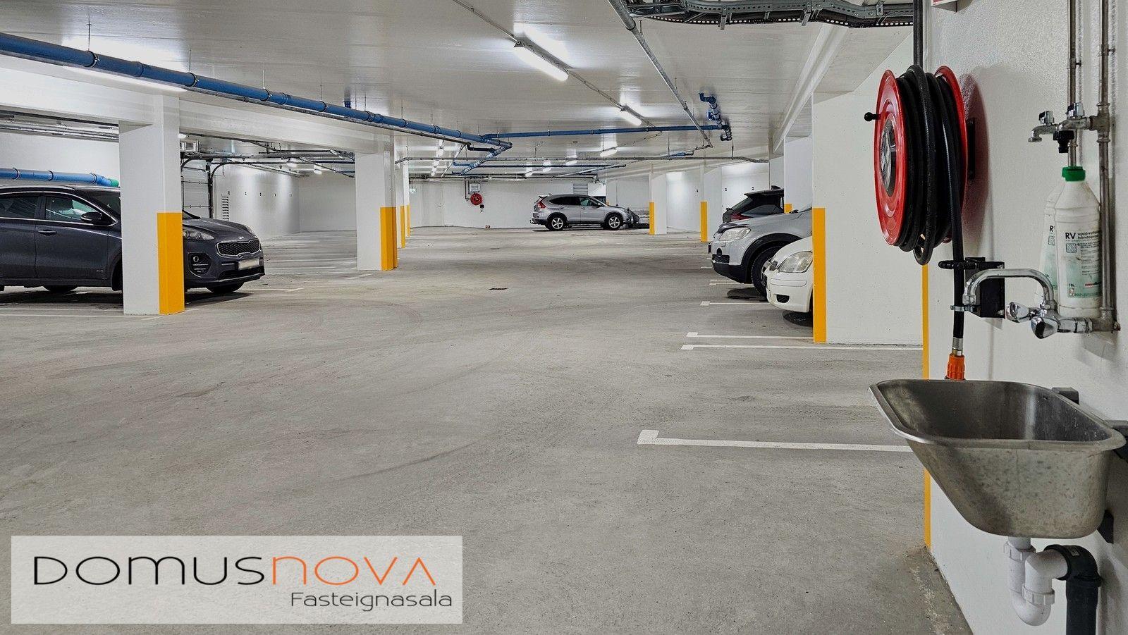 Bílageymsla: er í kjallara hússins. Aðkoma bifreiða um akstursramp og aðkoma gangandi frá sitthvorum enda stigahúss og um gönguhurð við ramp. Upphituð með lágu hitastigi/frostlaus. Vélræn loftræstingu og sjálfvirkt springler kerfi. Sjálfvirkur hurðaropnari er á hurð. Ein fjarstýring fylgir hverju bílastæði. LED lýsing í lofti