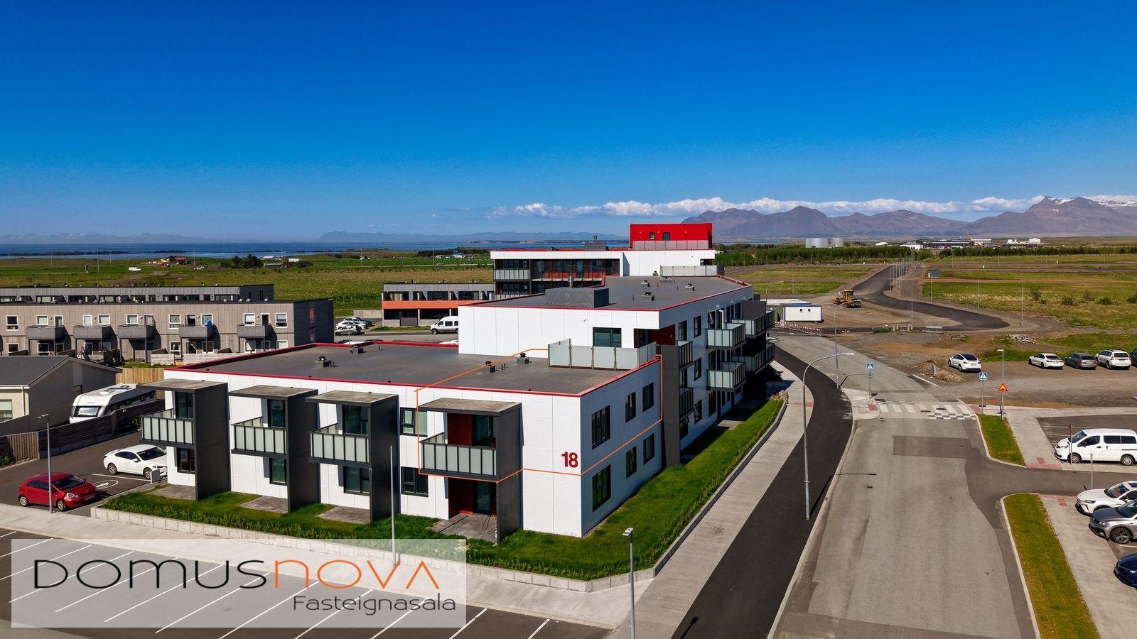 Lóð/bílastæði: Lóðin er 3325,0 fm. Innan lóðar eru 32 bílastæði, þar af eru 14 sérmerkt f. rafmagnsbíla og 3 fyrir hreyfihamlaða. Lóðin verður afhent fullbúin í lok byggingartímans. Bílastæði við götu eru malbikuð. Tengibúnaður (ídráttarrör) vegna hleðslu rafbíla er aðgengilegt við bílastæði. Milli húss og bílastæða við götu eru hellulagðar stéttar.