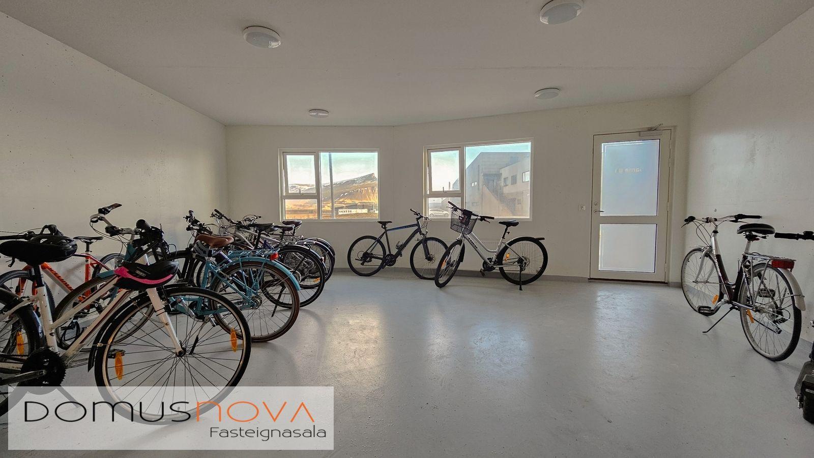 Sameign: Á 1. hæð er sameiginleg hjóla- og vagnageymsla. Rafmagnstöflur og rafmagnsmælar íbúða er staðsett í sameigninni.