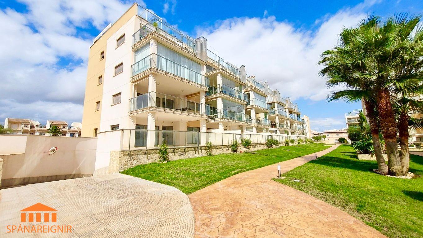 SPÁNAREIGNIR KYNNIR: *GLÆSILEG RÚMGÓÐ 4RA HERBERGJA NÝ ÍBÚÐ Á JARÐHÆÐ MEÐ 122 FM SÉRAFNOTARÉTTI Á LÓÐ* *STAÐSETT Í HINU VINSÆLA KRYDDHVERFI Í VILLAMARTIN* *GÖNGUFÆRI VIÐ GOLF, VERSLANIR OG VEITINGASTAÐI* *LYFTUHÚSNÆÐI, GEYMSLA OG STÆÐI Í BÍLAGEYMSLU*Virkilega vönduð og vel skipulögð 96 fm 4ra herbergja íbúð á jarðhæð með 122 fm sérafnotarétti á lóð. Eldhús opið við stofu, bjart og fallegt rými, útgengi á lóð frá stofu og svefnherbergi. Tvö baðherbergi. Sameiginlega svæðið er stórkostlegt, þrennar sundlaugar þar af ein uppituð innisundlaug, líkamsræktaraðstaða og græn svæði. Eigninni fylgir stæði í bílageymslu og geymsla. Öll eldhústæki fylgja.