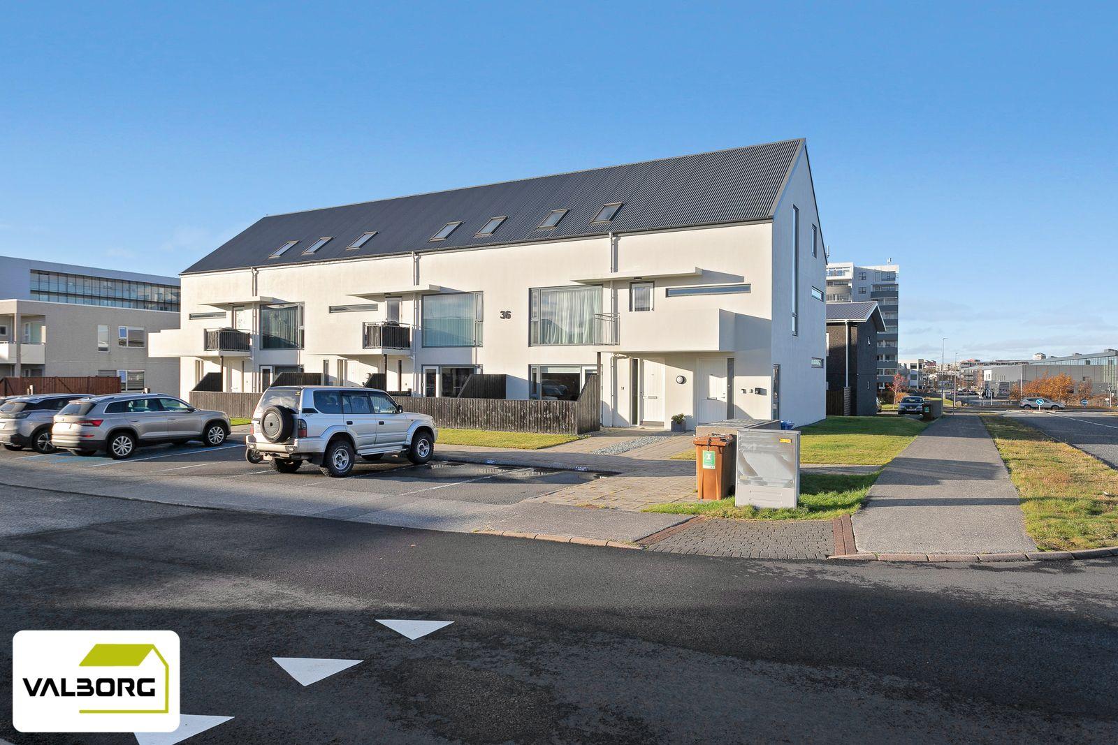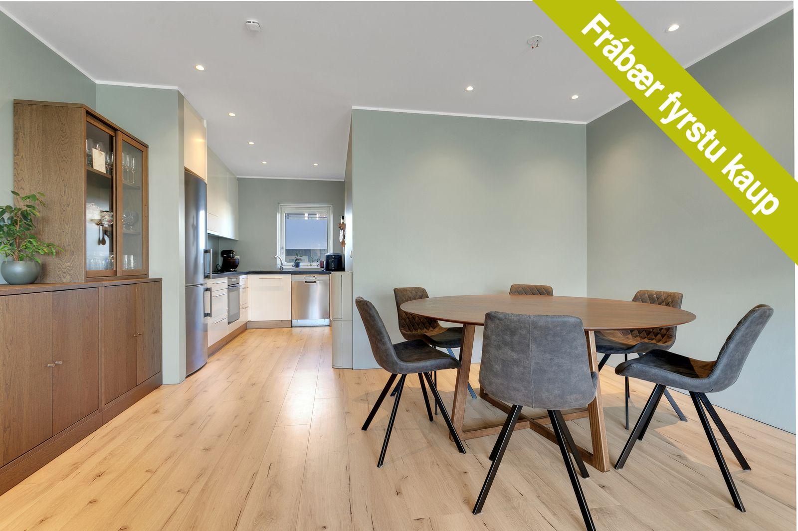 Elínborg María Ólafsdóttir, löggiltur fasteignasali, í síma 861 6866, tölvupóstur elinborg@valborgfs.is.Eignin skiptist í anddyri, gang, opið rými sem er eldhús, stofa/borðstofa, baðherbergi, svefnherbergi, geymsla/lítið herbergi og þvottahús. Útgengt út á verönd frá stofu/borðstofu og útgengt frá þvottahúsi í sameiginlegan lítinn garð.Nánari lýsing: Anddyri: Hvítir fataskápar. Flísar á gólfi.