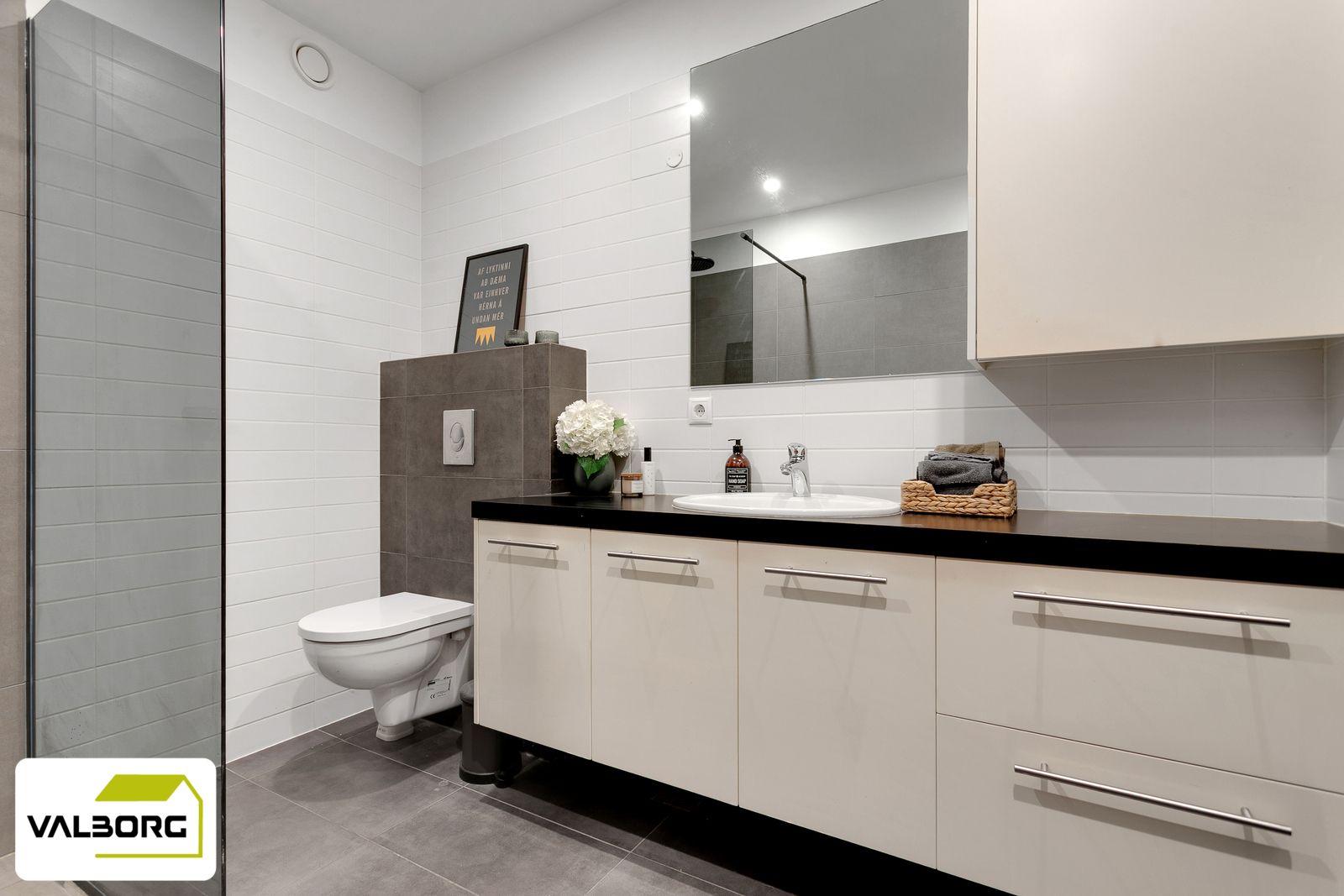 Baðherbergi: Baðinnrétting hvít. Handklæðaofn, upphengt salerni og nýleg walk in sturta. Flísar á gólfi.