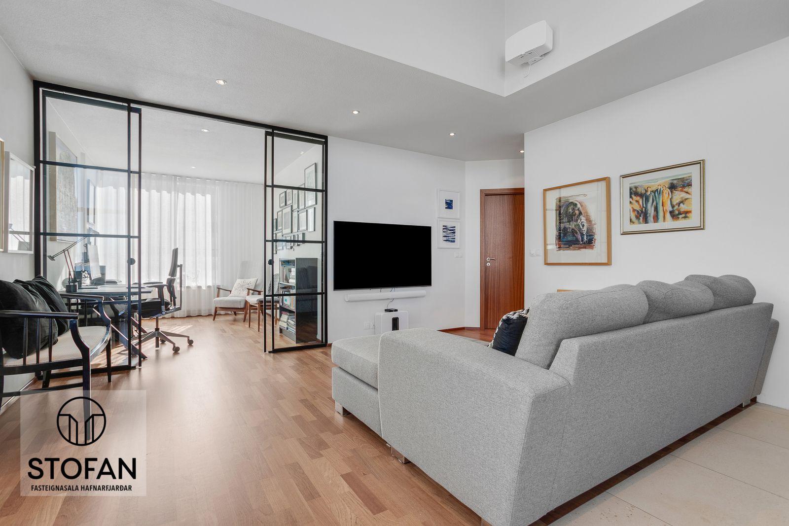 Eignin er endaíbúð og er skráð samtals 125 fm og fylgir henni stæði í lokaðri bílageymslu.