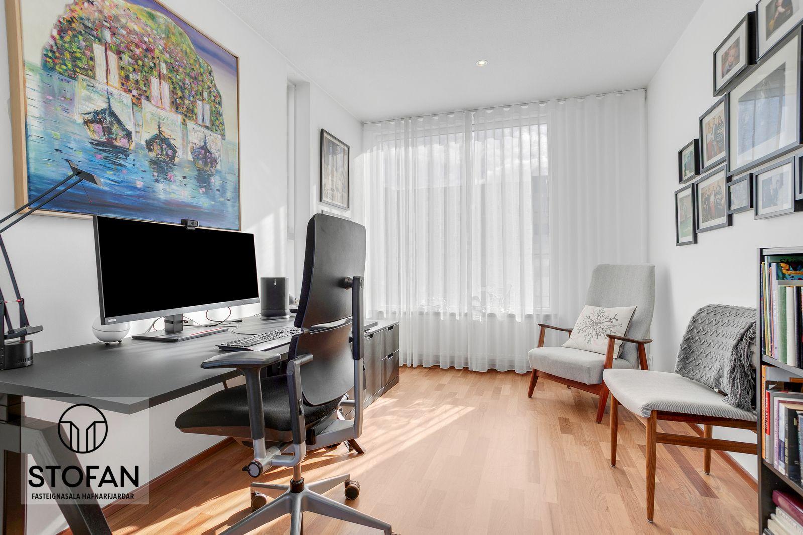 herbergi hefur verið útbúið út frá stofu með fallegum glervegg/hurð, parket á gólfi.