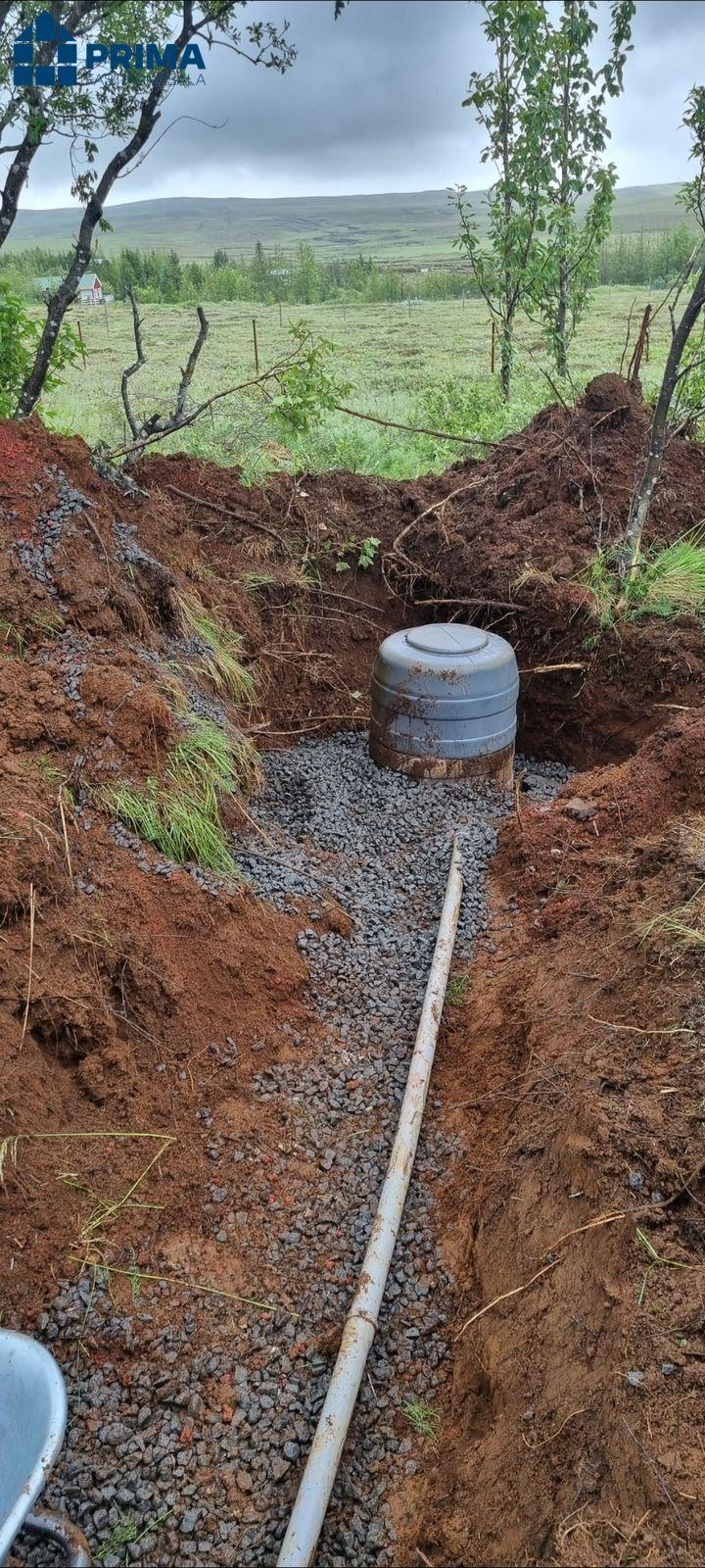 Nýtt frárennsli fyrir eldhús og bað. (Ekki búið að fara í rotþró)