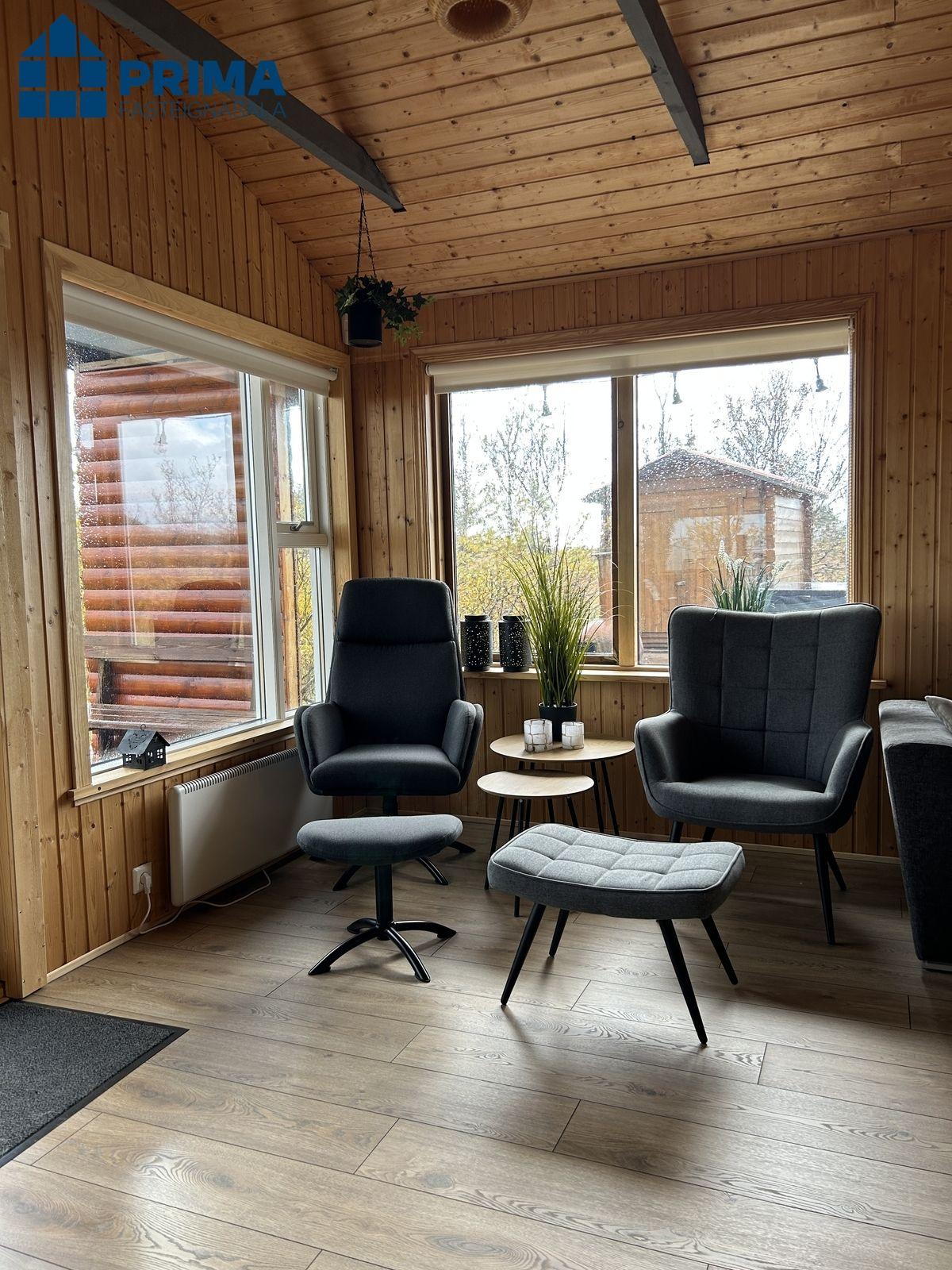 Stór sólpallur, heitur pottur (rafmagnspottur en tengdur við kaminu.