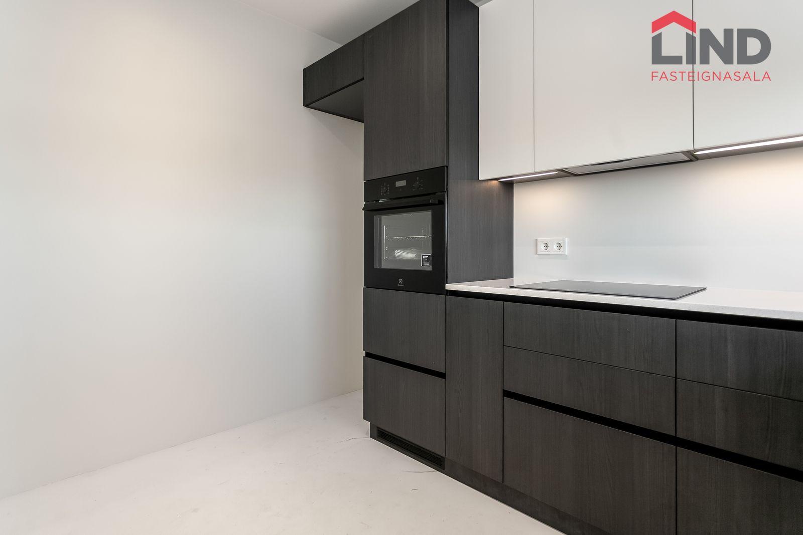 Eldhús: Sérsmíðuð og vönduð innrétting, þar sem lögð er áhersla á að haga skipulagi eldhúsa á sem bestan hátt með nútíma hönnun og þarfir í huga, með miklu skápaplássi, möguleiki á innbyggðri uppþvottavél, bakaraofn í vinnuhæð, helluborð. Borðplata verður úr ljósum