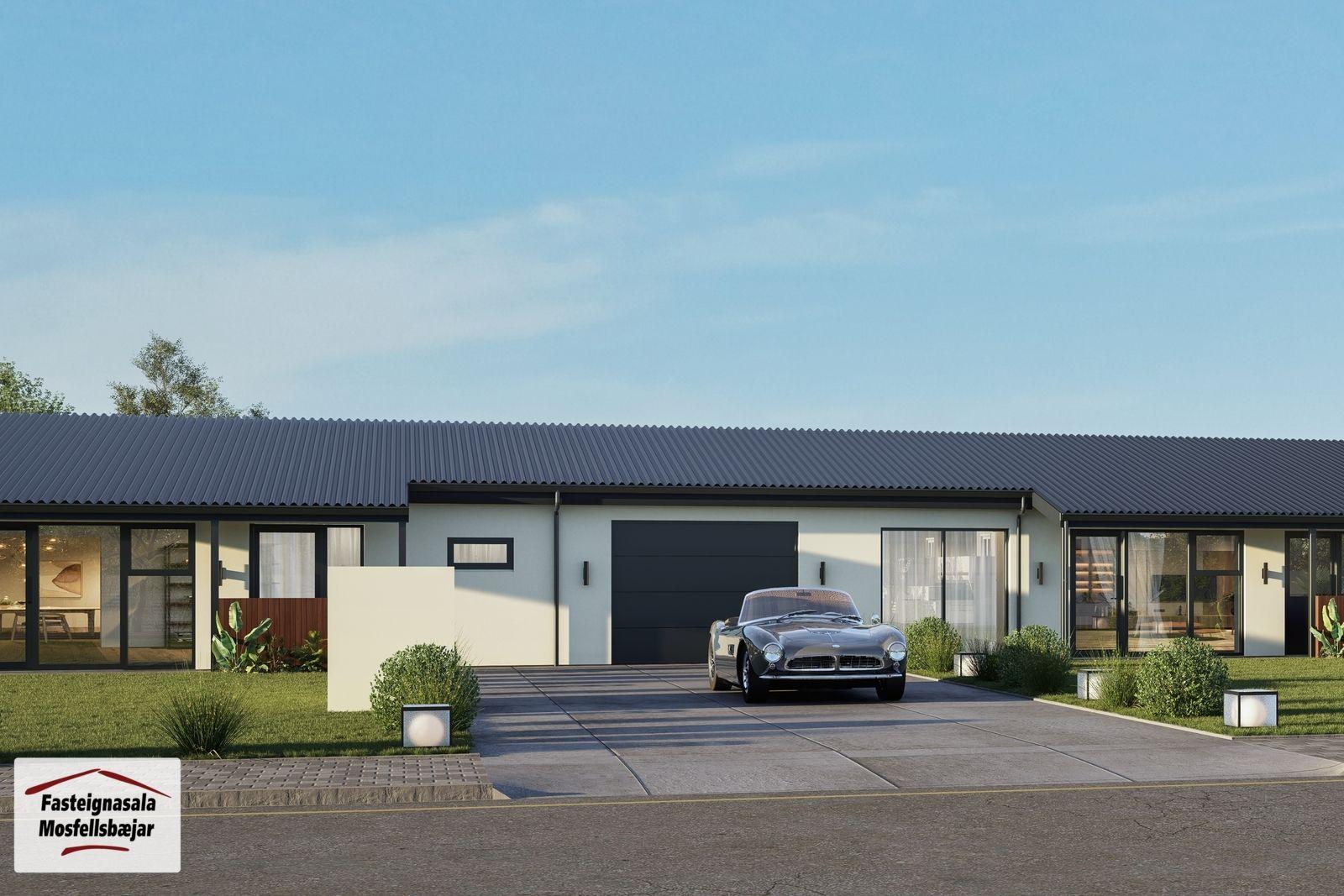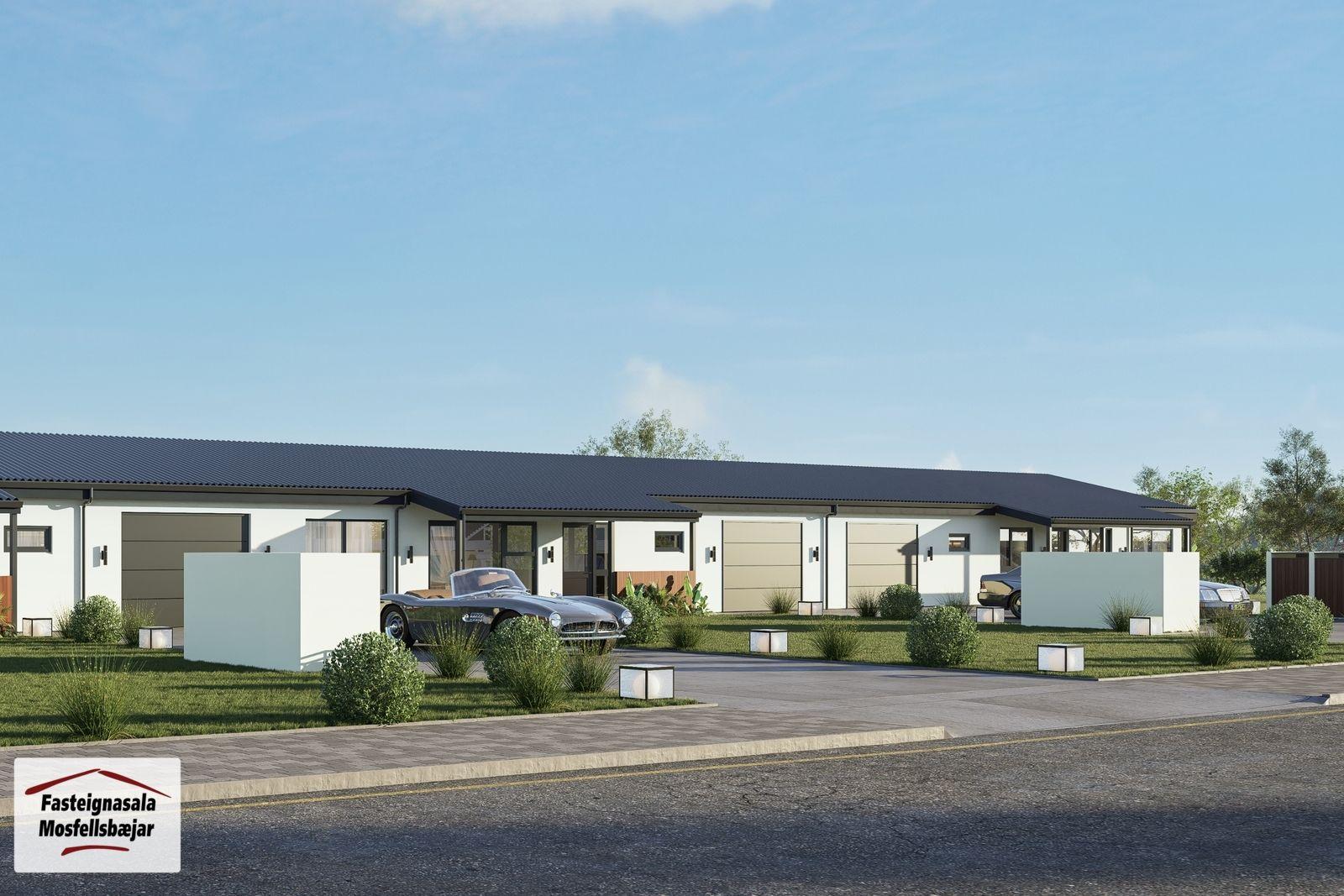Smelltu hér til að fá söluyfirlit sent strax.Skilalýsing er eftirfarandi:Utanhúss: Raðhús á einni hæð með bílskúr byggt úr forsteyptum einingum frá Steypustöðinni.