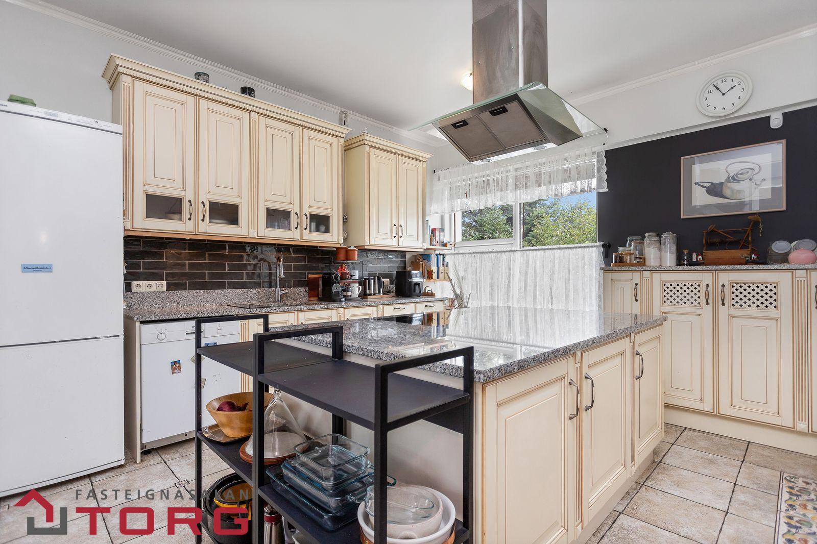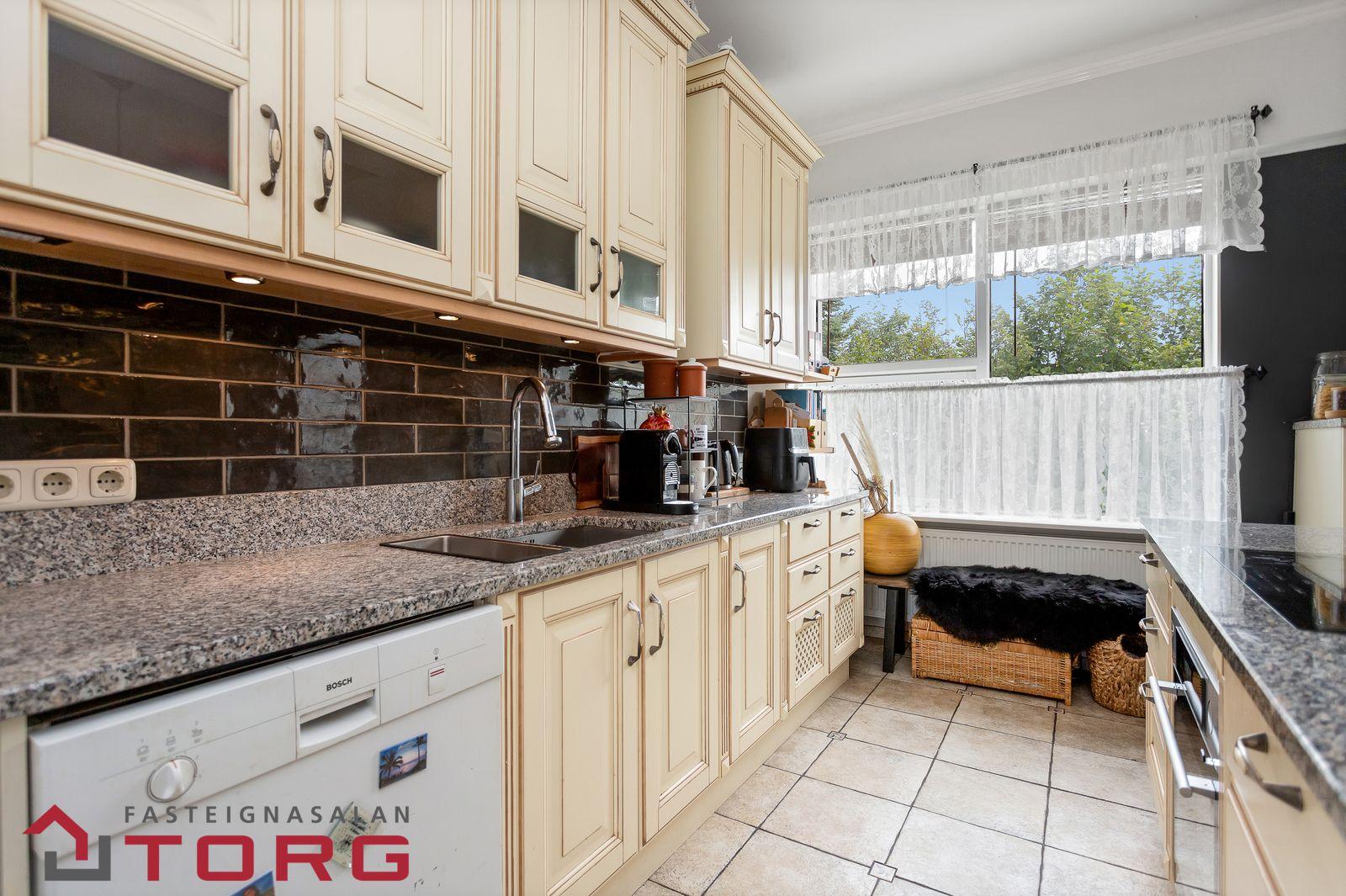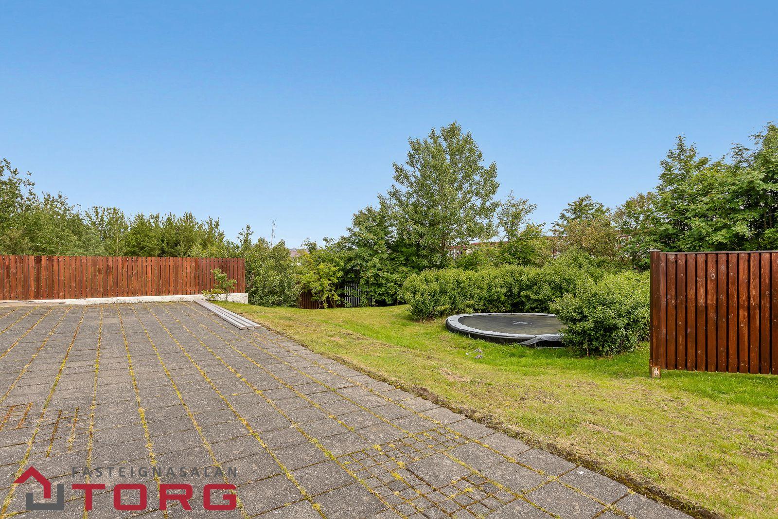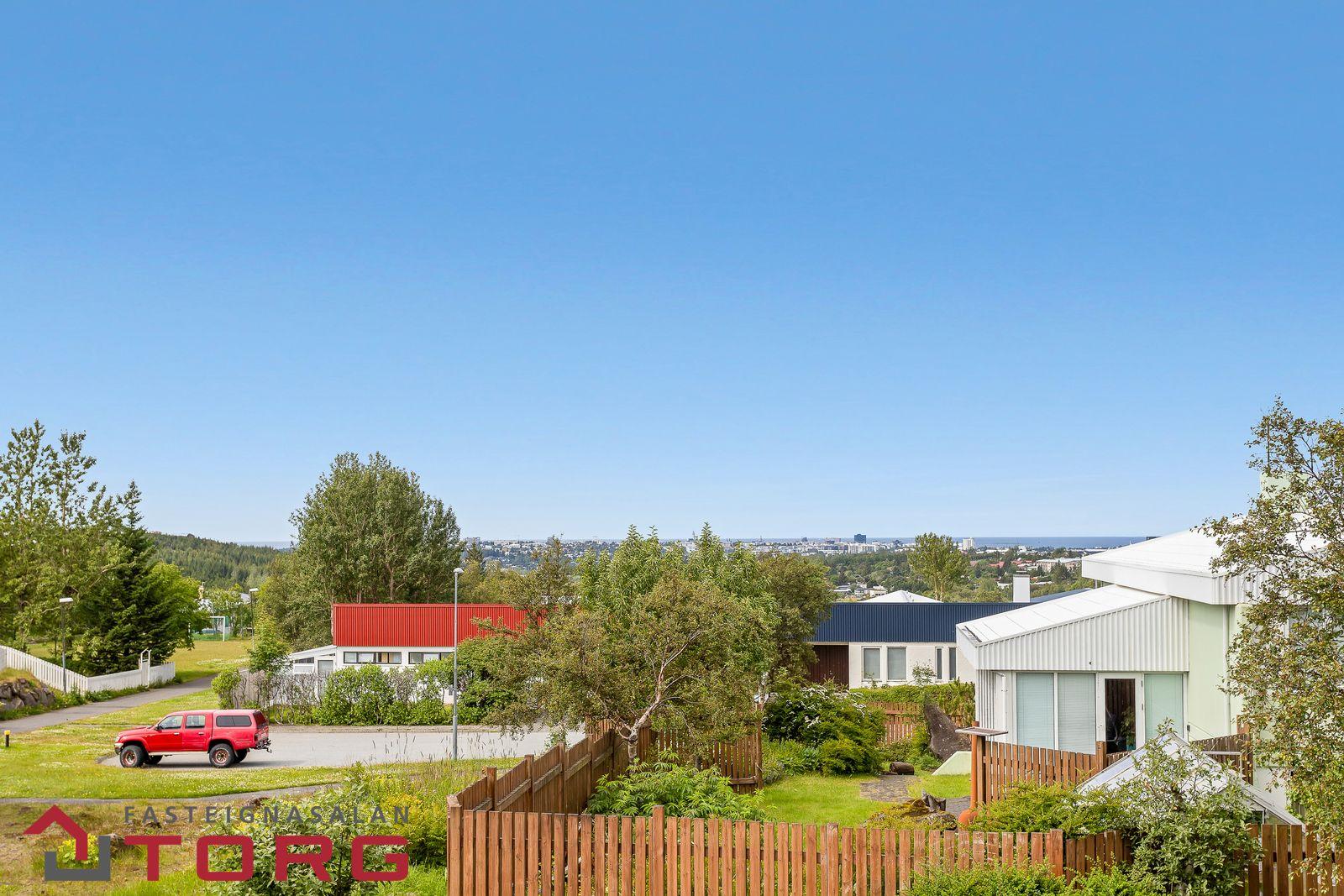 Eignin er skráð 234,7 m2, þar af raðhús 212,5 m2 og bílskúr 22,2 m2. Góður garður er við húsið og fallegt útsýni af efri hæð húsins.