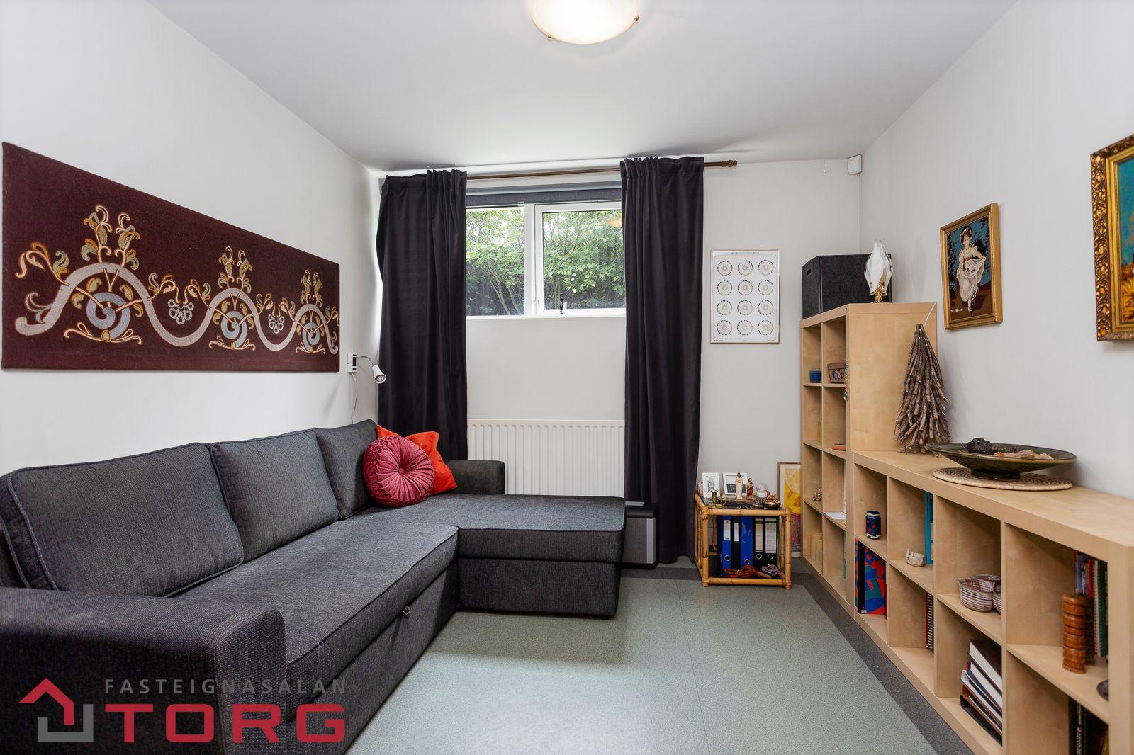 Í næsta nágrenni er sundlaug, líkamsræktarstöð og fjöldi útivistarmöguleika. Neðri hæð: Forstofa er með flísum á gólfi og góðum skápum.
