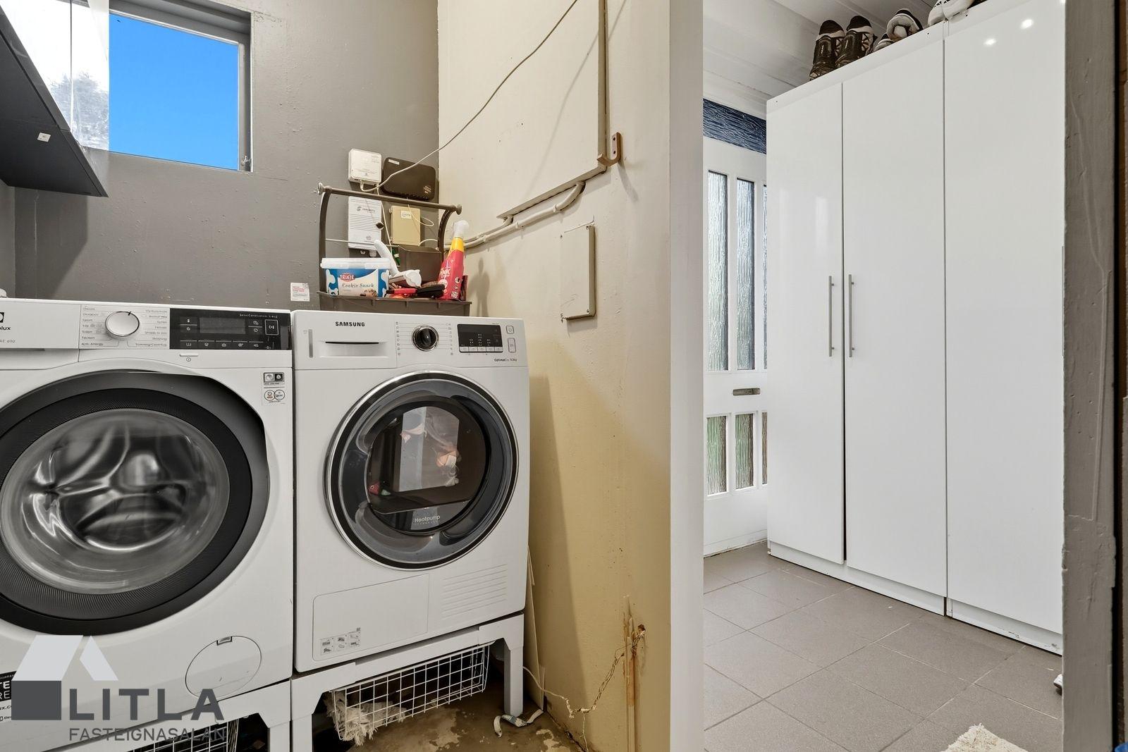 Þvottahús er inn af forstofu