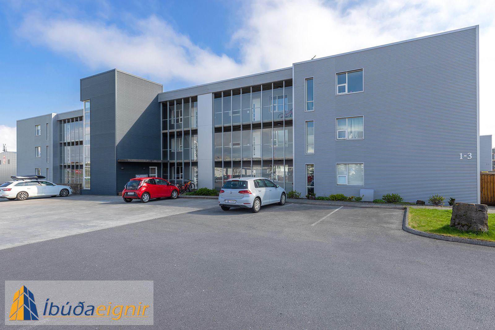 Sér bílastæði í upphitaðri bílageymslu, innangengt úr sameign. Bílskúrshurðaopnari og möguleiki á að setja upp sér hleðslustöð fyrir rafmagnsbíla.