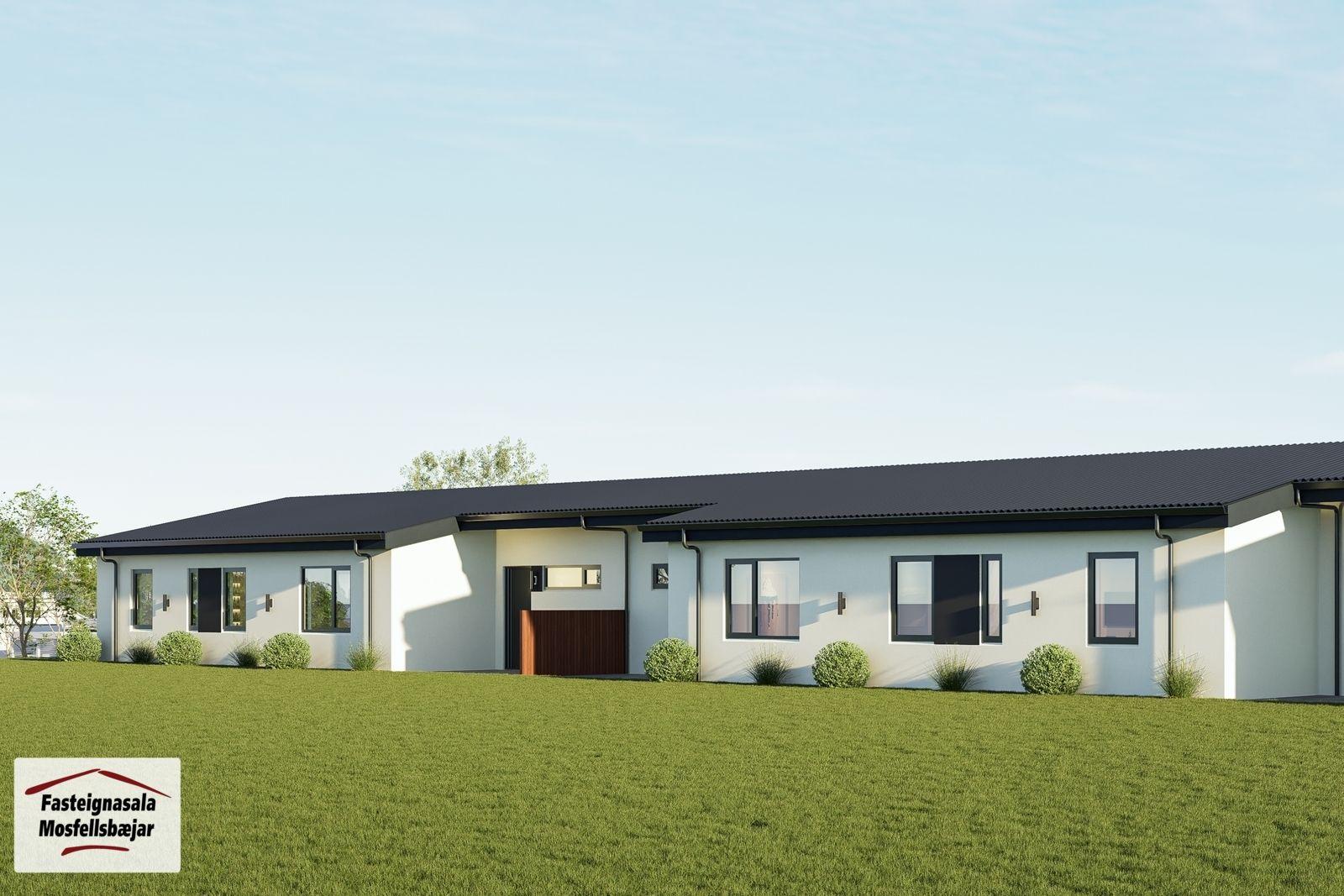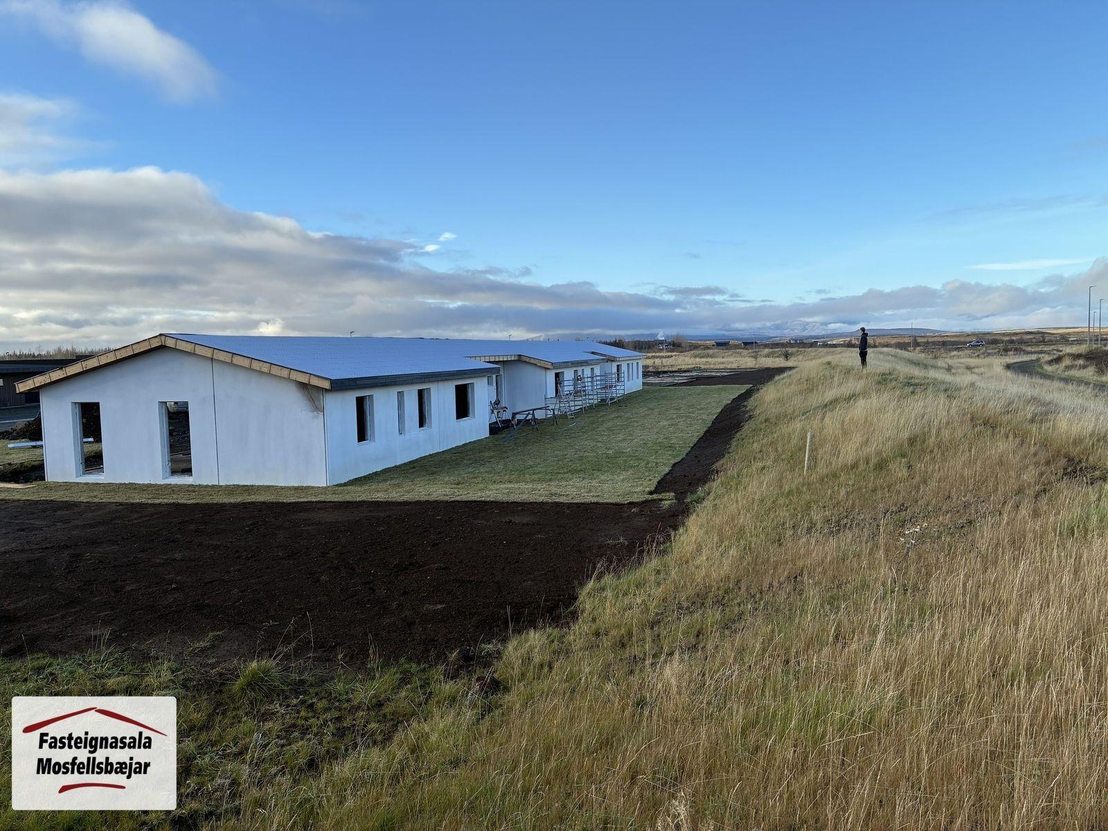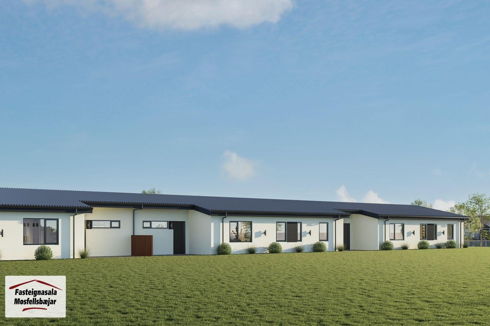 Smelltu hér til að fá söluyfirlit sent strax.Skilalýsing er eftirfarandi:Utanhúss: Raðhús á einni hæð með bílskúr byggt úr forsteyptum einingum frá Steypustöðinni.